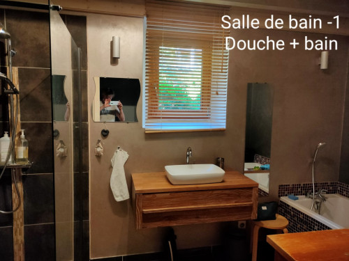 Salle de bains 1 : Douche à l'italienne, Baignoire, Lavabo, Sèche-cheveux