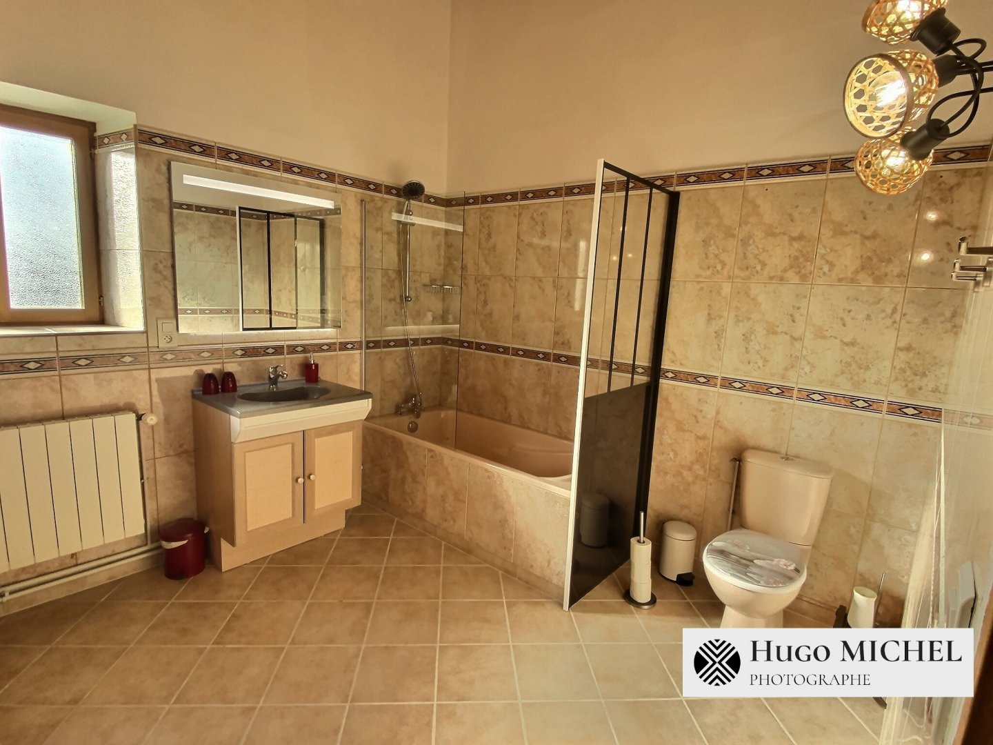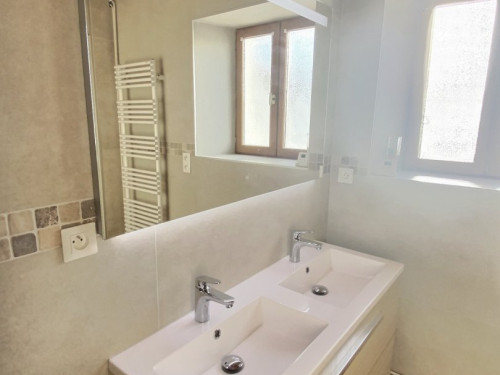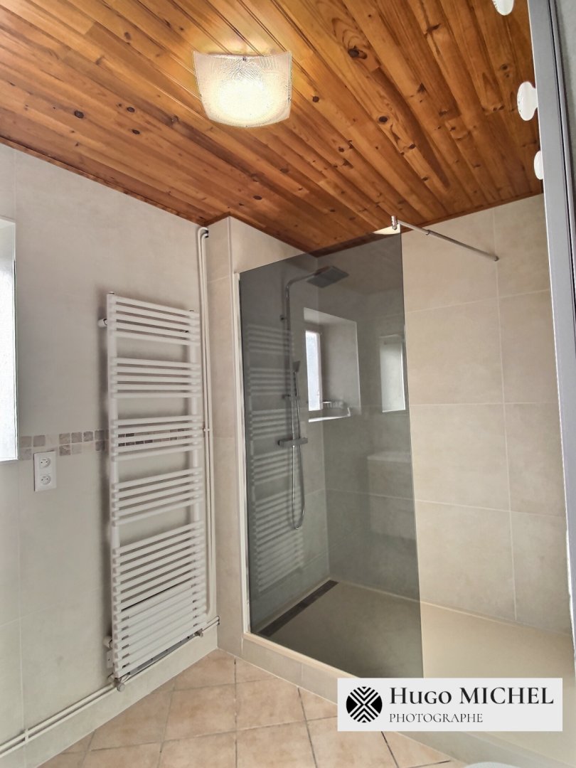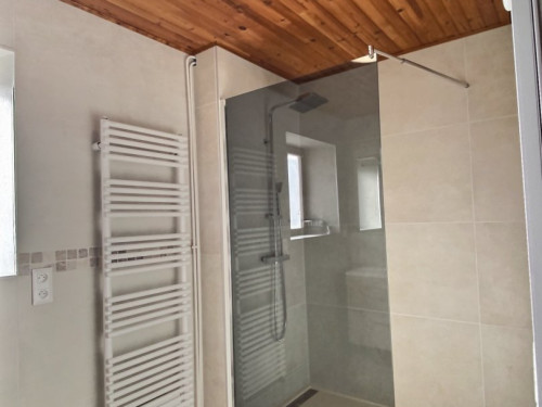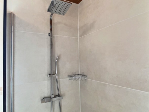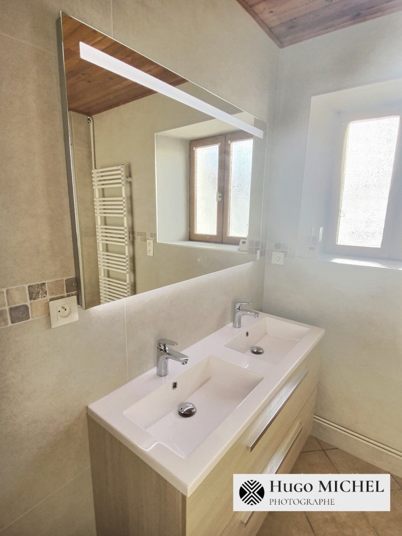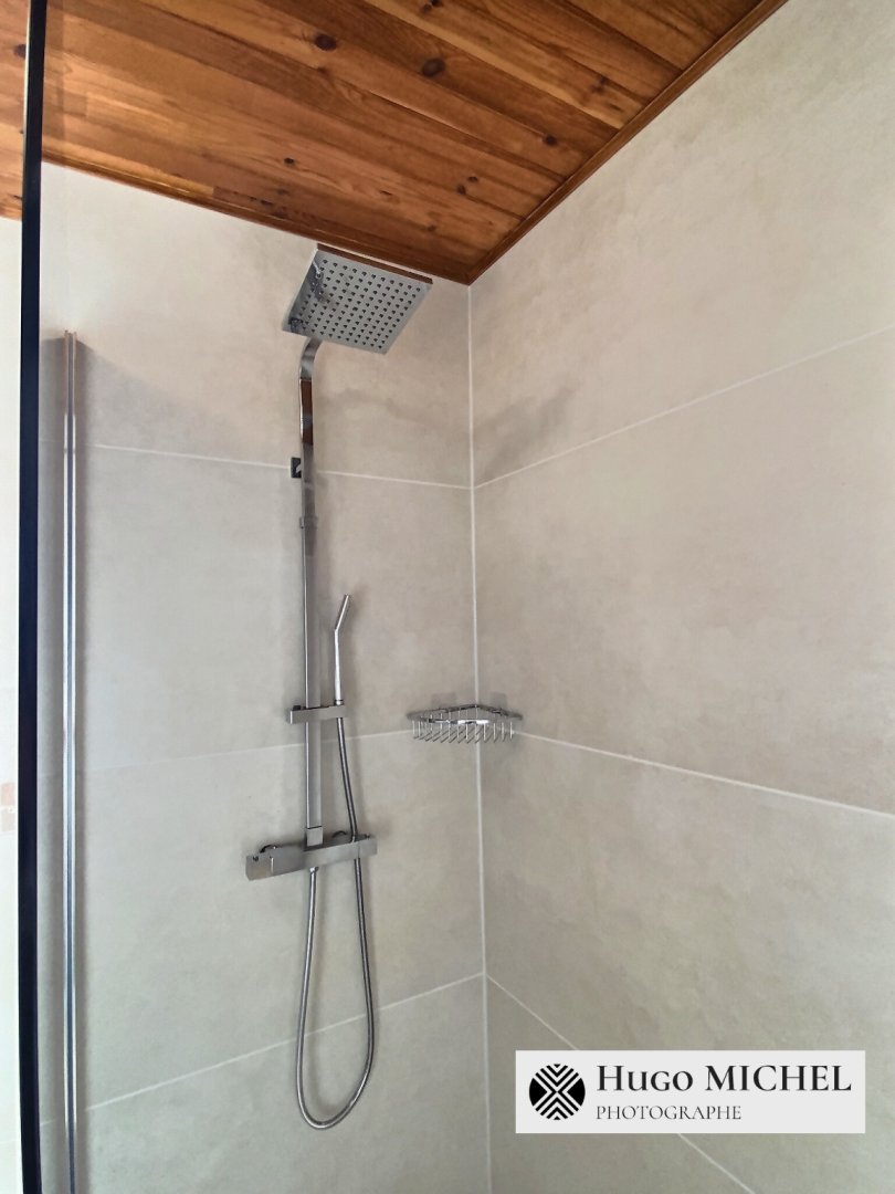 • au rez-de-chaussée : une grande douche et un double vasque