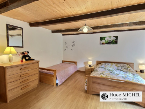 • la chambre 3, à l’étage est une grande chambre comportant une armoire, un lit King size et un lit double (2 adultes + 2 enfants ou 4 adultes)