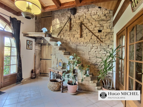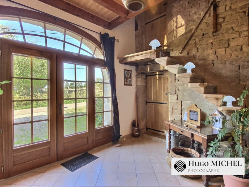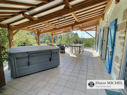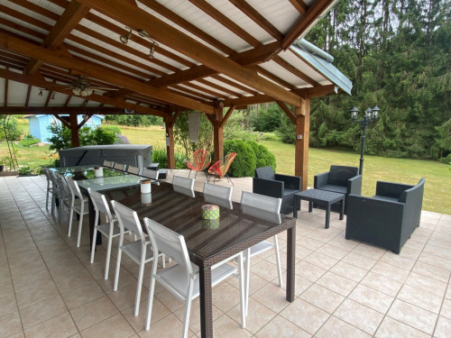 La propriété dispose d'un terrain de 4000 m² ainsi que de deux terrasses dont une couverte avec salon de jardin, table et spa.