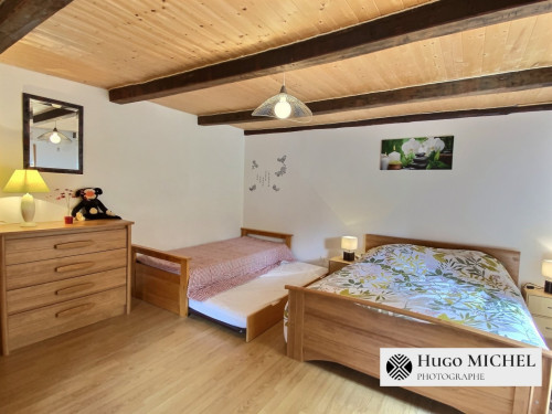 • la chambre 4 est une chambre possédant une commode, une armoire, un lit double (2 adultes) et un lit simple pouvant en formé 2 en le tirant par le dessous (1 ou 2 enfants)