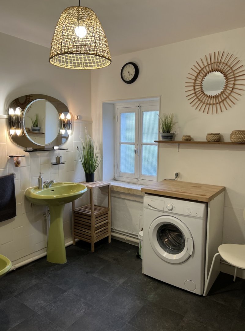 • Une salle de bain spacieuse avec baignoire et toilettes indépendantes.