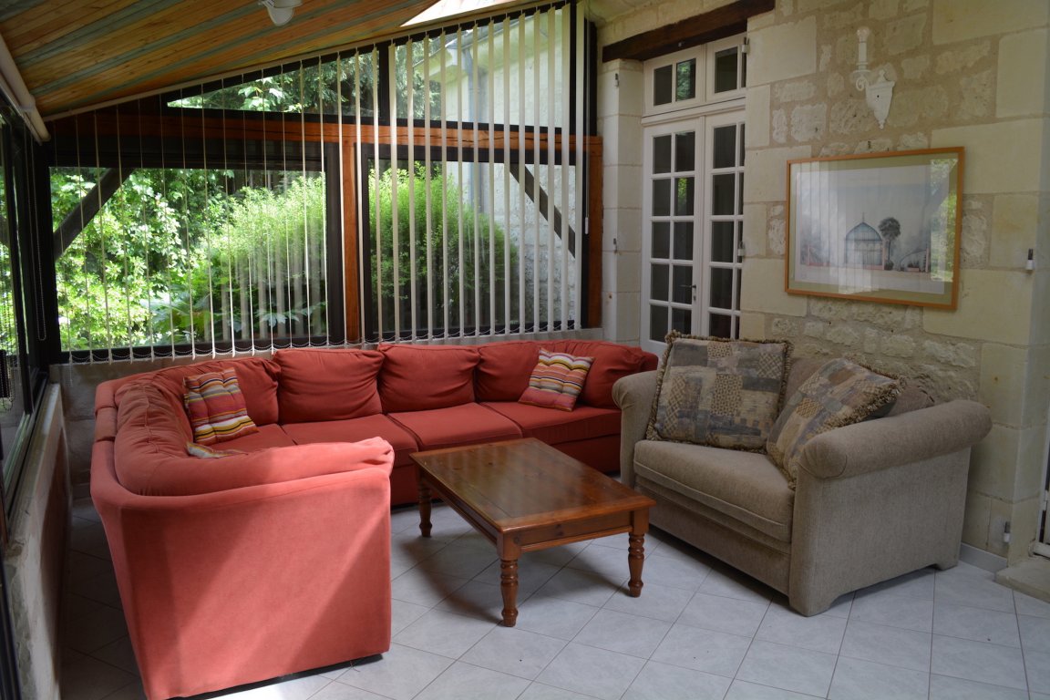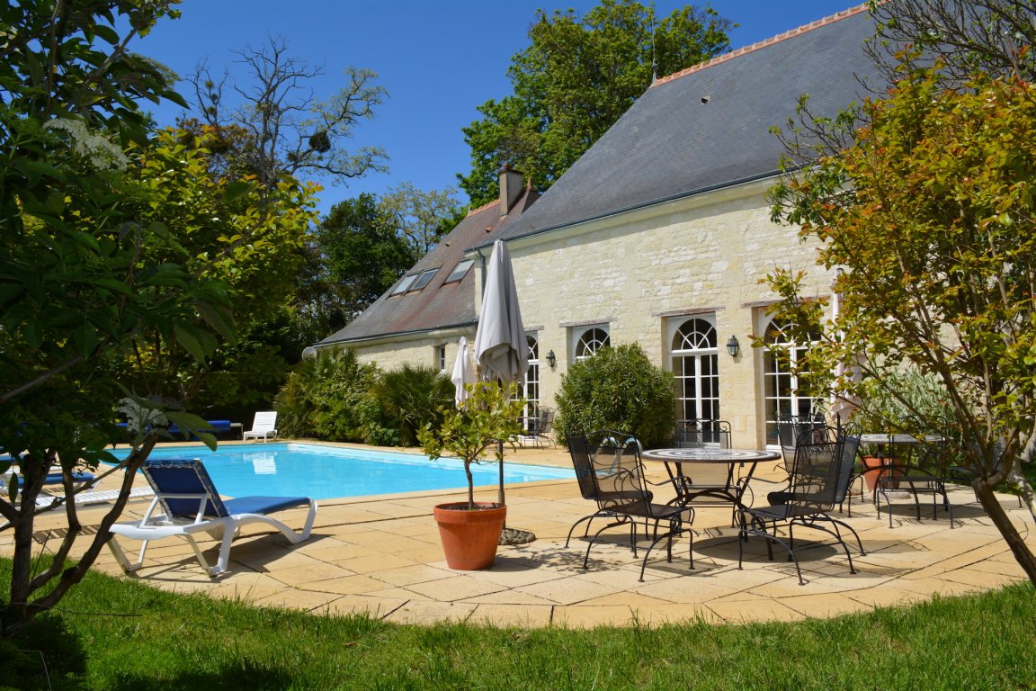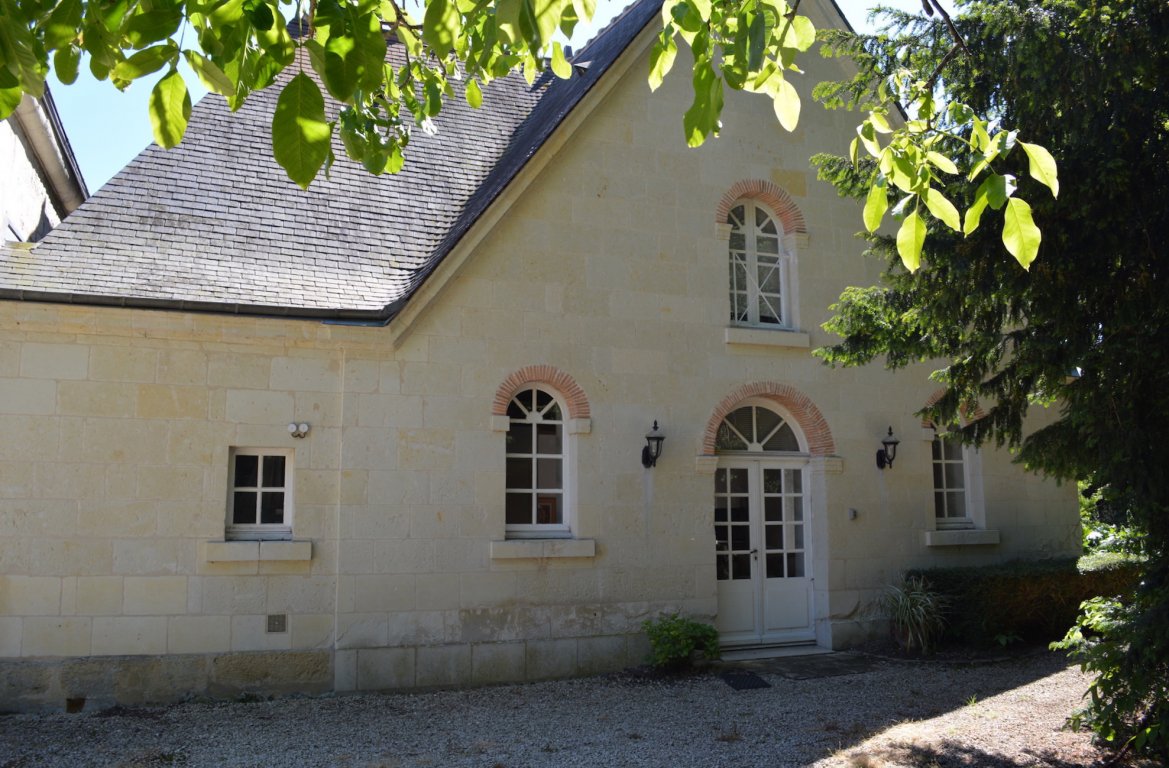 À 7 km de Chinon, à côté de l'orangerie et à proximité de la piscine d'un élégant château Renaissance parfaitement entretenu, dans un parc entièrement clos de 2,6 hectares aux arbres centenaires, avec une magnifique roseraie, un bassin à poissons, une chapelle médiévale et une arche classée.