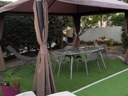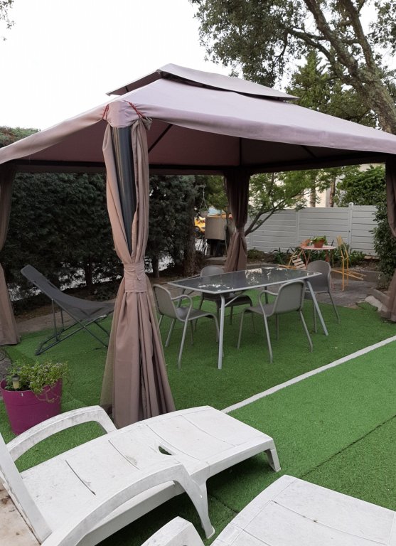 Petite maison individuelle composée de 2 chambres, un grand séjour très lumineux, une cuisine équipée, salle de bain, WC indépendant, petit jardin clos avec pergola ombragée.