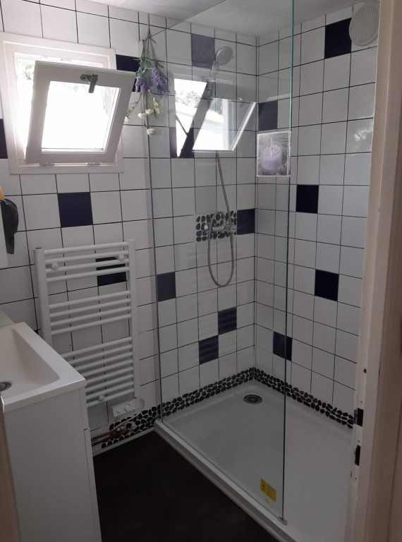 Douche à l'italienne, Vasque, Sèche-cheveux, Sèche-serviettes