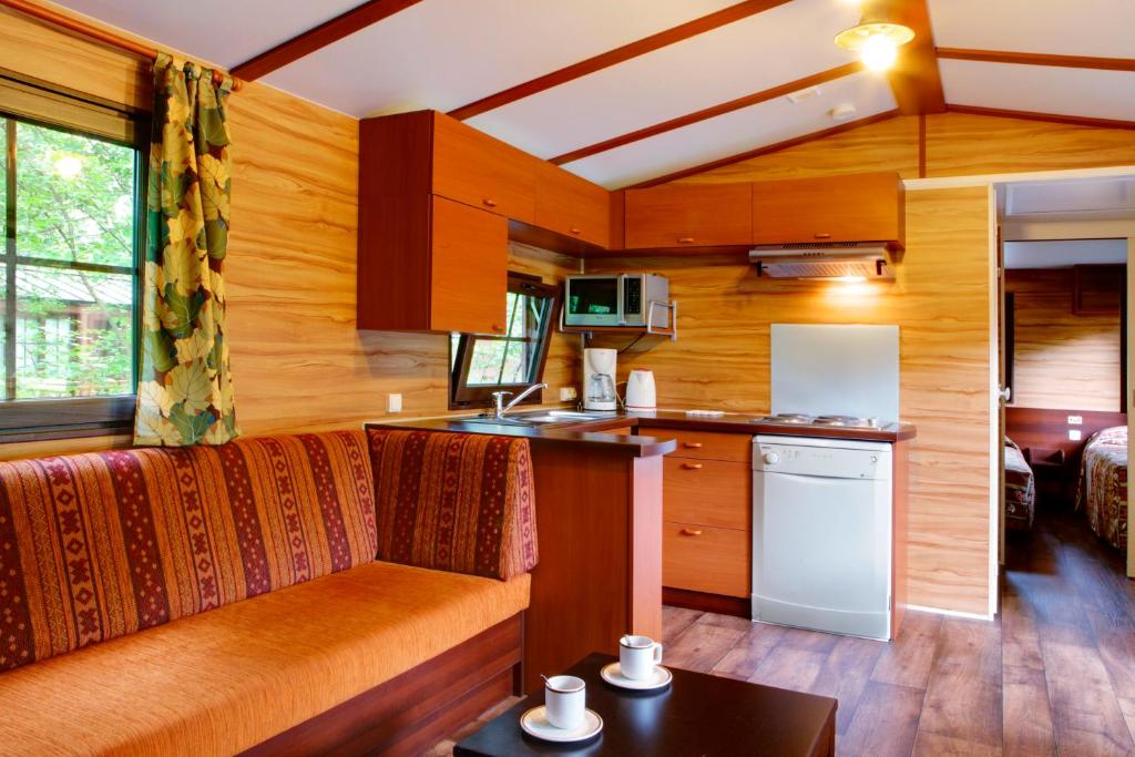Doté d’une entrée privée, ce bungalow climatisé se compose d’un salon, de 2 chambres séparées ainsi que de 2 salles de bains avec douche à l’italienne et sèche-cheveux. La kitchenette entièrement équipée est munie d’un réfrigérateur, d’un lave-vaisselle, d’un micro-ondes et d’ustensiles. Ce bungalow bénéficie également d’un barbecue. Accessible en fauteuil roulant, ce bungalow insonorisé dispose d’un coin salon avec une télévision à écran plat. La douche est également accessible en fauteuil roulant. Ce logement comporte 4 lits.