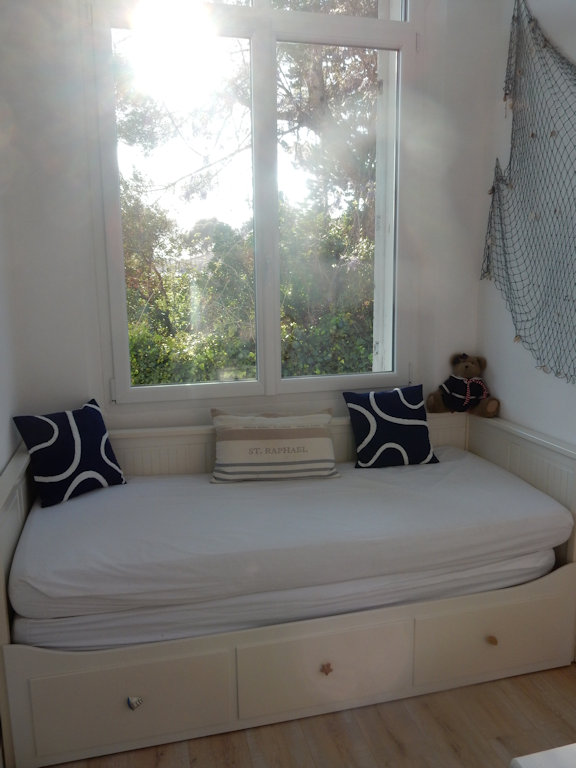 On retrouve également une chambre pour 2 personnes et une chambre pour 1 personne. En mezzanine, un lit 2 personnes et un canapé convertible très confortable sont disponibles. Un second réfrigérateur se trouve en mezzanine pour tenir votre rosé au frais.