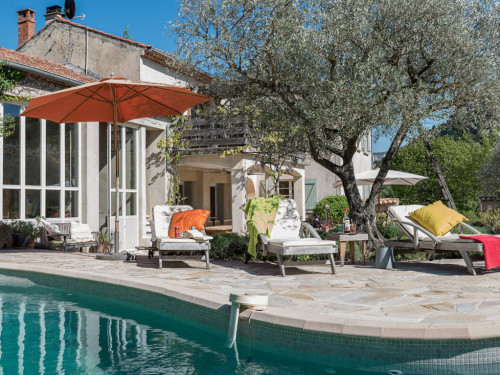 Son ambiance « LOFT » contemporaine est pour autant rassurante, car les matériaux nobles et authentiques tel que le douglas, l'enduit à la chaux, les tomettes de terre cuites sont marquant.
