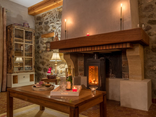 La vaste terrasse couverte vous offre une vue panoramique, sur le hameau, les marnes voisines, COUGOIR le sommet dominant la vallée de ST PONS, le tout agrémenté du doux bruissement de la rivière MARNAS qui coule à ses cotés.
