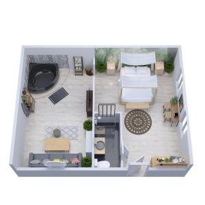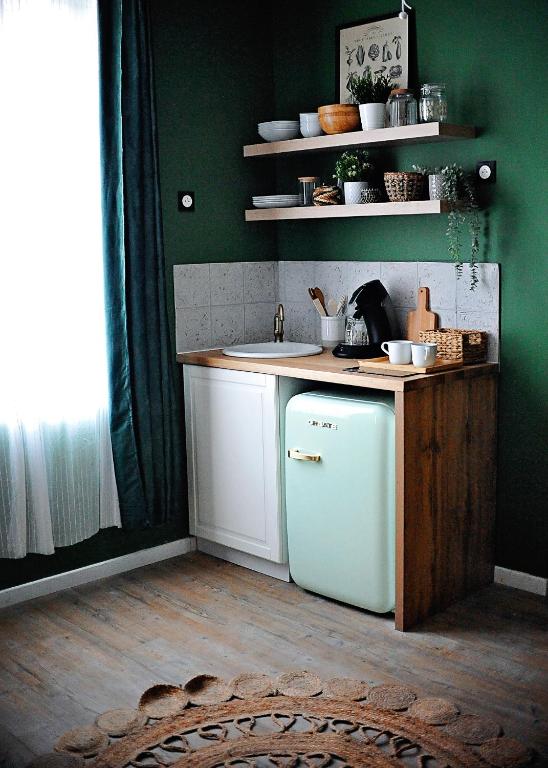 Cet appartement comporte 1 chambre, une cuisine avec un réfrigérateur et un micro-ondes, ainsi que 1 salle de bains avec une douche et un bain à remous. Des serviettes et du linge de lit sont à votre disposition.