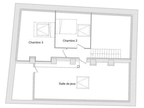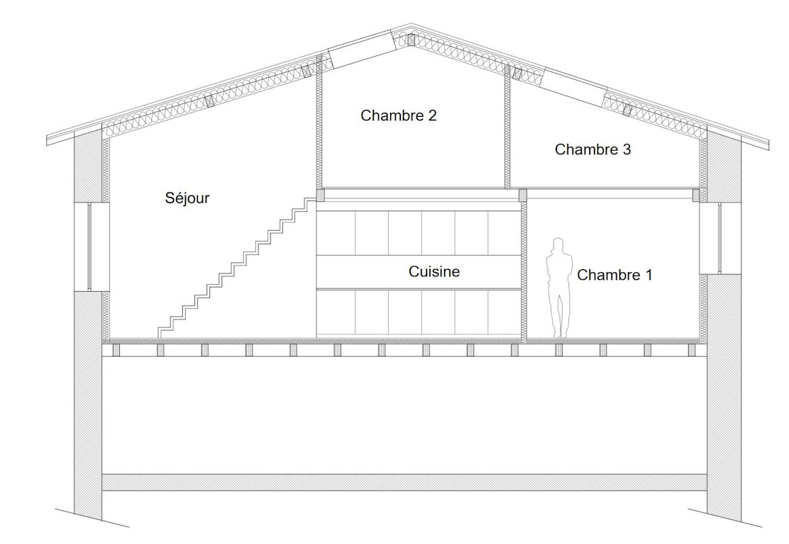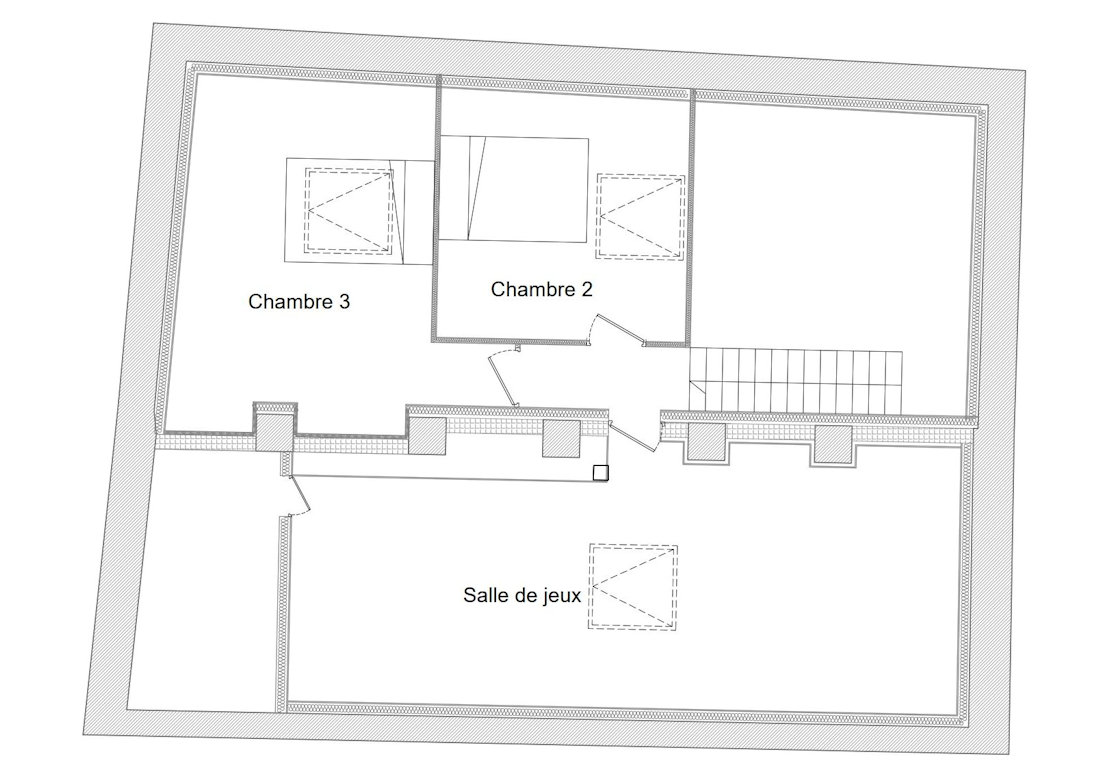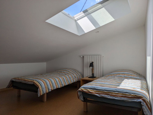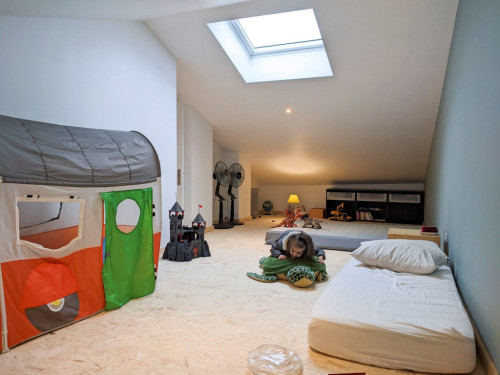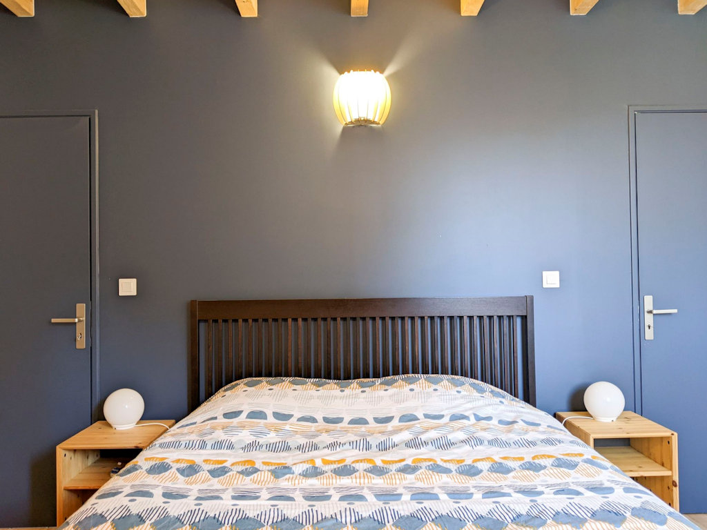 À l’étage, une chambre double (lit 140x200), une chambre avec lits jumeaux (2 lits 90x190 et 1 lit enfant 60x120), et une salle de jeux (accessible de 10h00 à 20h).