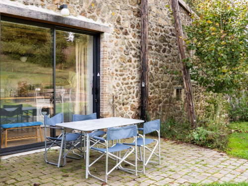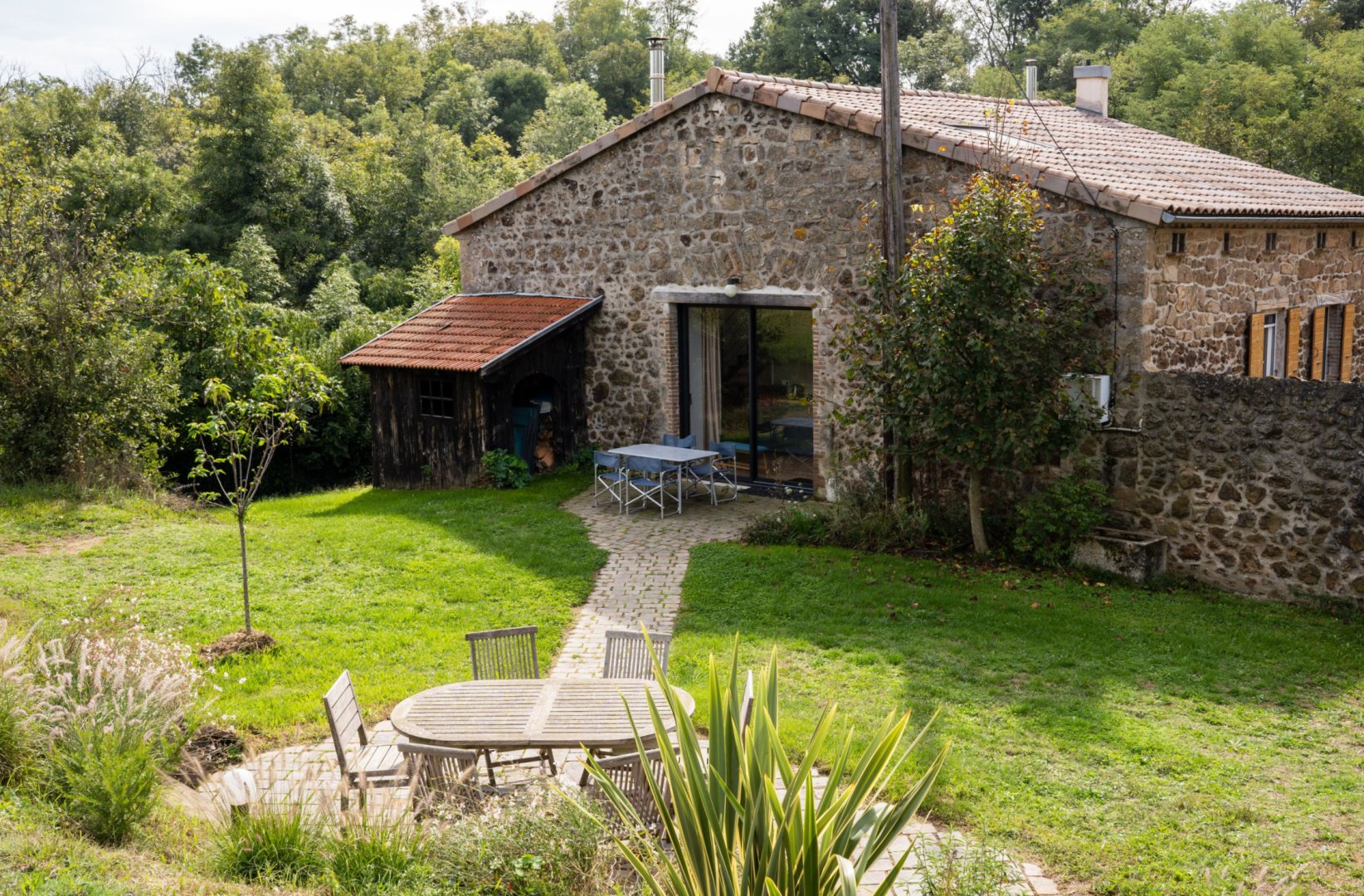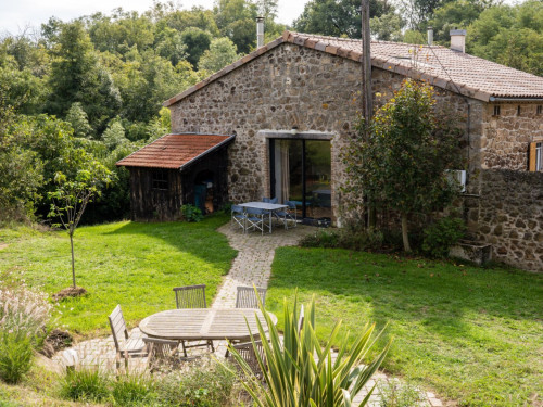 Dans un écrin de verdure, ancien corps de ferme réhabilité avec des matériaux de qualité. Gîte familial, idéal pour 4 à 6 personnes, au calme absolu, terrasses et jardin privatifs, à proximité immédiate des sentiers de randonnées/VTT.