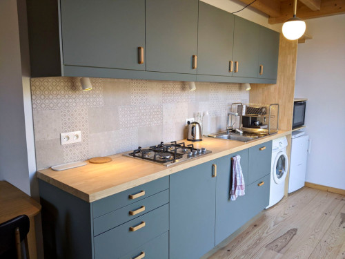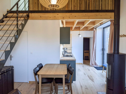 En pleine nature, ancienne grange réhabilitée qui a su garder charme et authenticité sans transiger sur la qualité des matériaux, le confort thermique et les performances énergétiques. En rez-de-chaussée une pièce à vivre (salon / salle à manger) avec cuisine entièrement équipée, une chambre double (lit 160x200), une salle d’eau (grande douche), un WC.