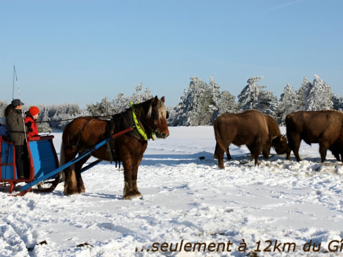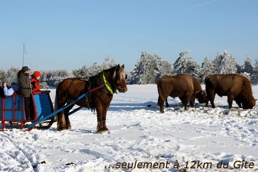 Le parc des Bisons d’Europe, où vous pouvez vous balader auprès d’eux en calèche ou en traineau selon la saison, est situé à 15 min du gite. Les amateurs de loups ou bien les enfants, pourrons visiter le parc animalier du loup du Gévaudan situé à 25 min.