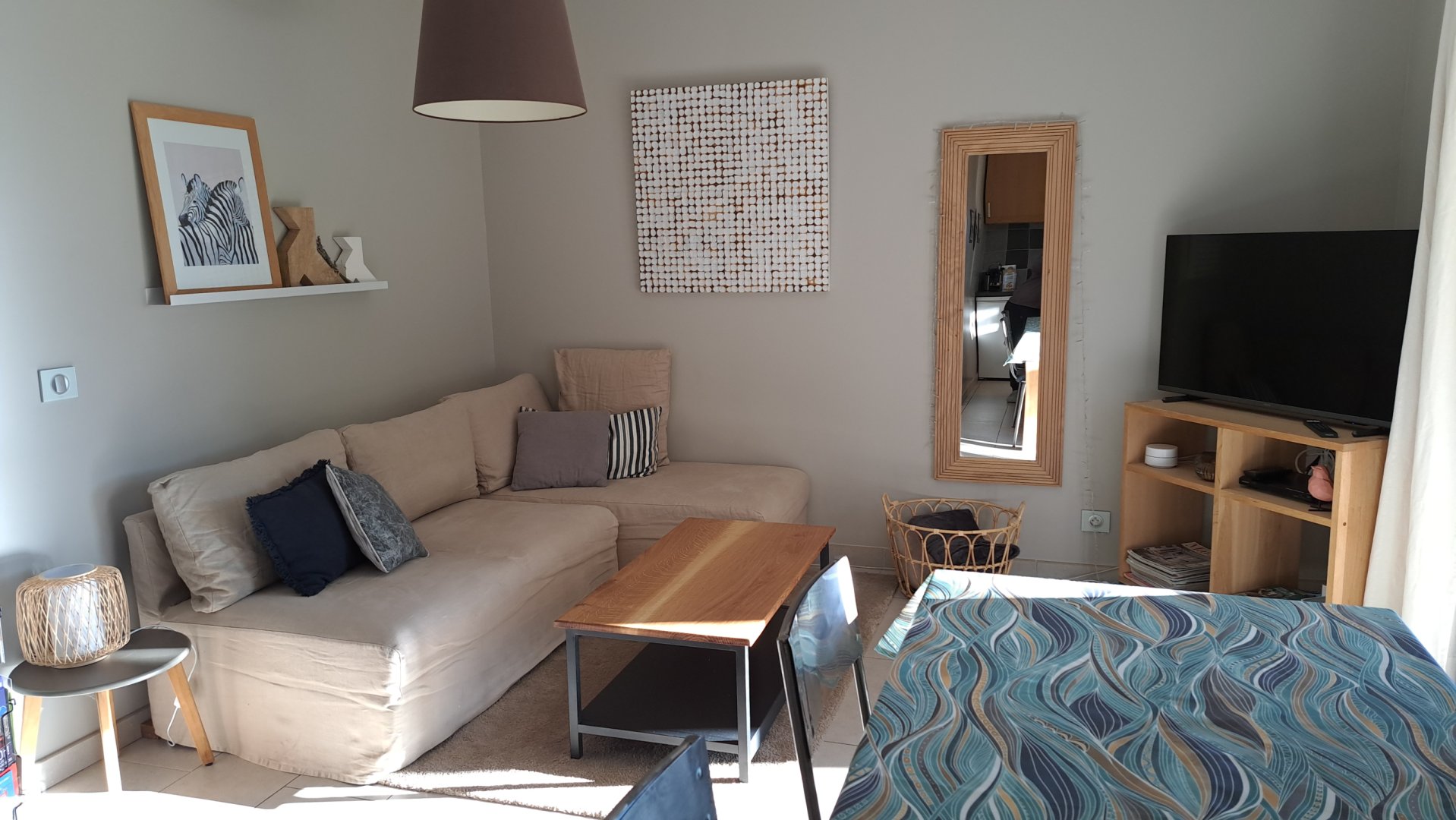 Une borne WIFI est située dans le salon. Netflix est installé sur la Télévision.