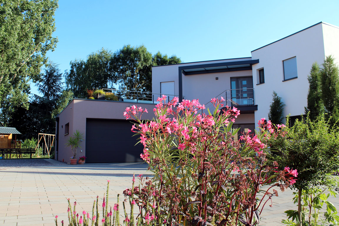 Lové au calme d’une oasis de verdure, dans un environnement ouvert sur la nature et des jardins, il allie sa modernité avec l’authenticité d’un corps de ferme à colombages XVIIIème.