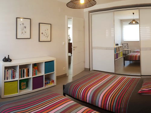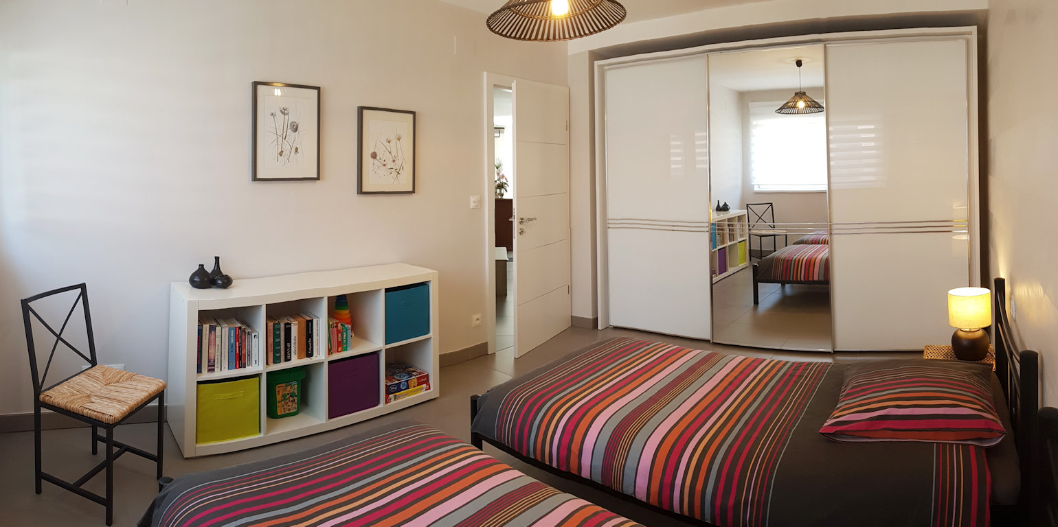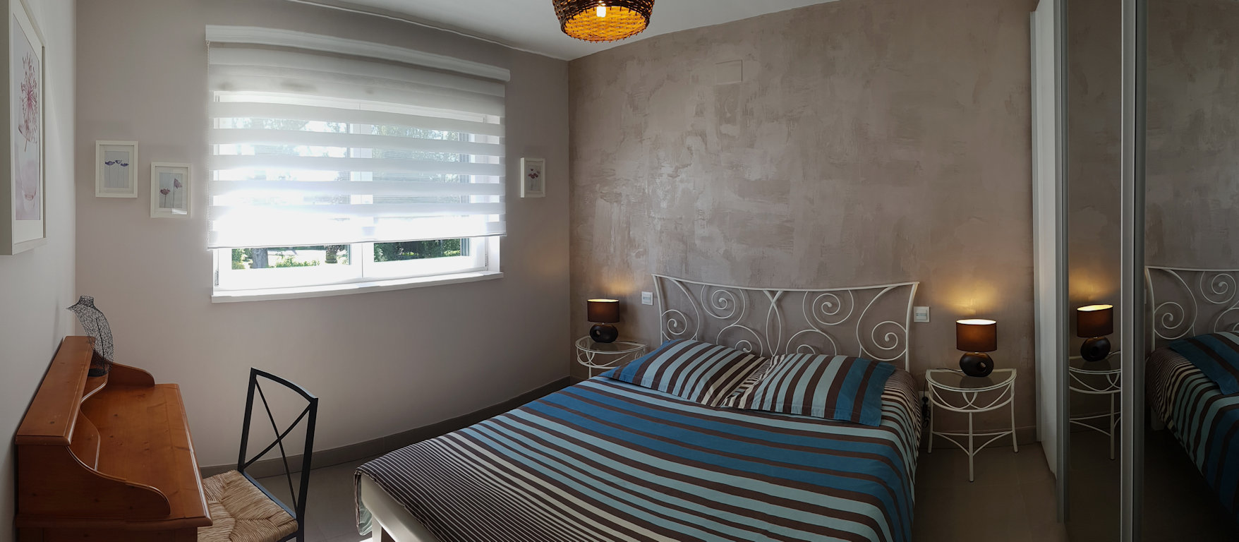 - 2 chambres, 1 avec 1 lit 2 personnes, l'autre avec 2 lits 1 personne