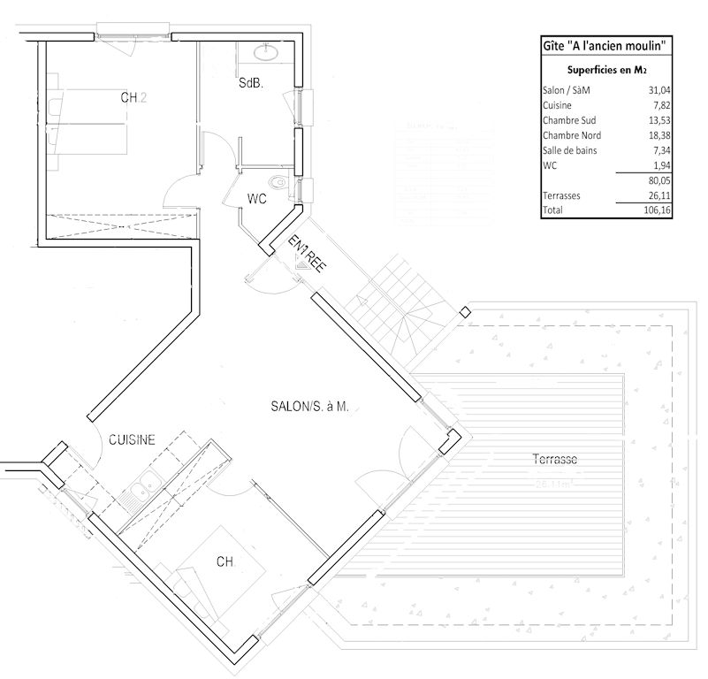 Le meublé "À l'Ancien Moulin", labellisé Gîte de France, primé EcoGîte et récompensé de plusieurs « trophée d’Excellence des clients », est un logement indépendant aménagé à l'étage de la maison du propriétaire.