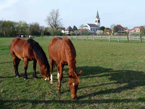 Le village, commune nature 3 libellules (sans pesticide) et 2 fleurs, flirte avec le centre de Strasbourg.