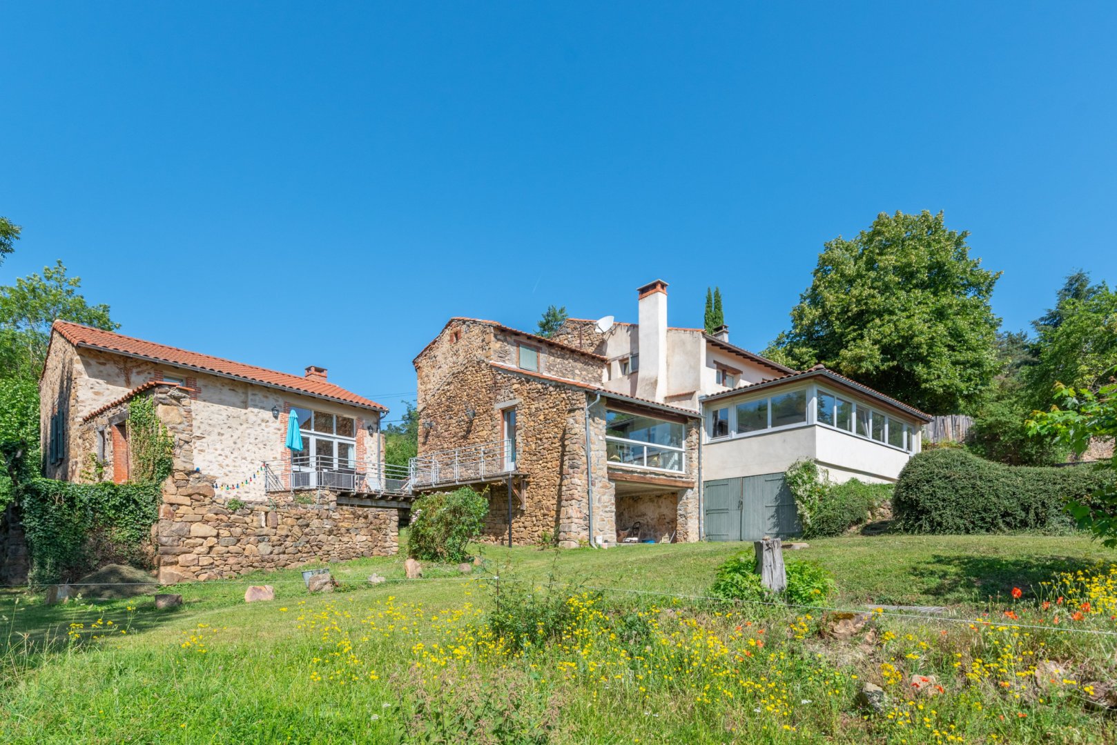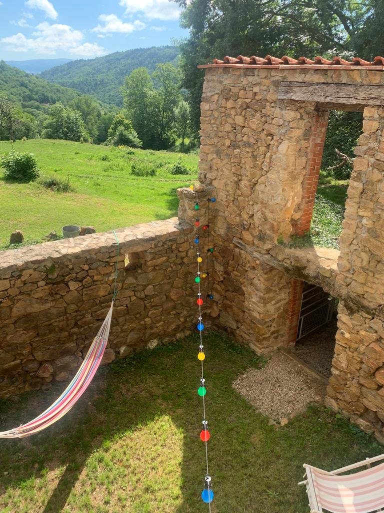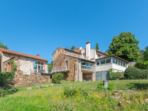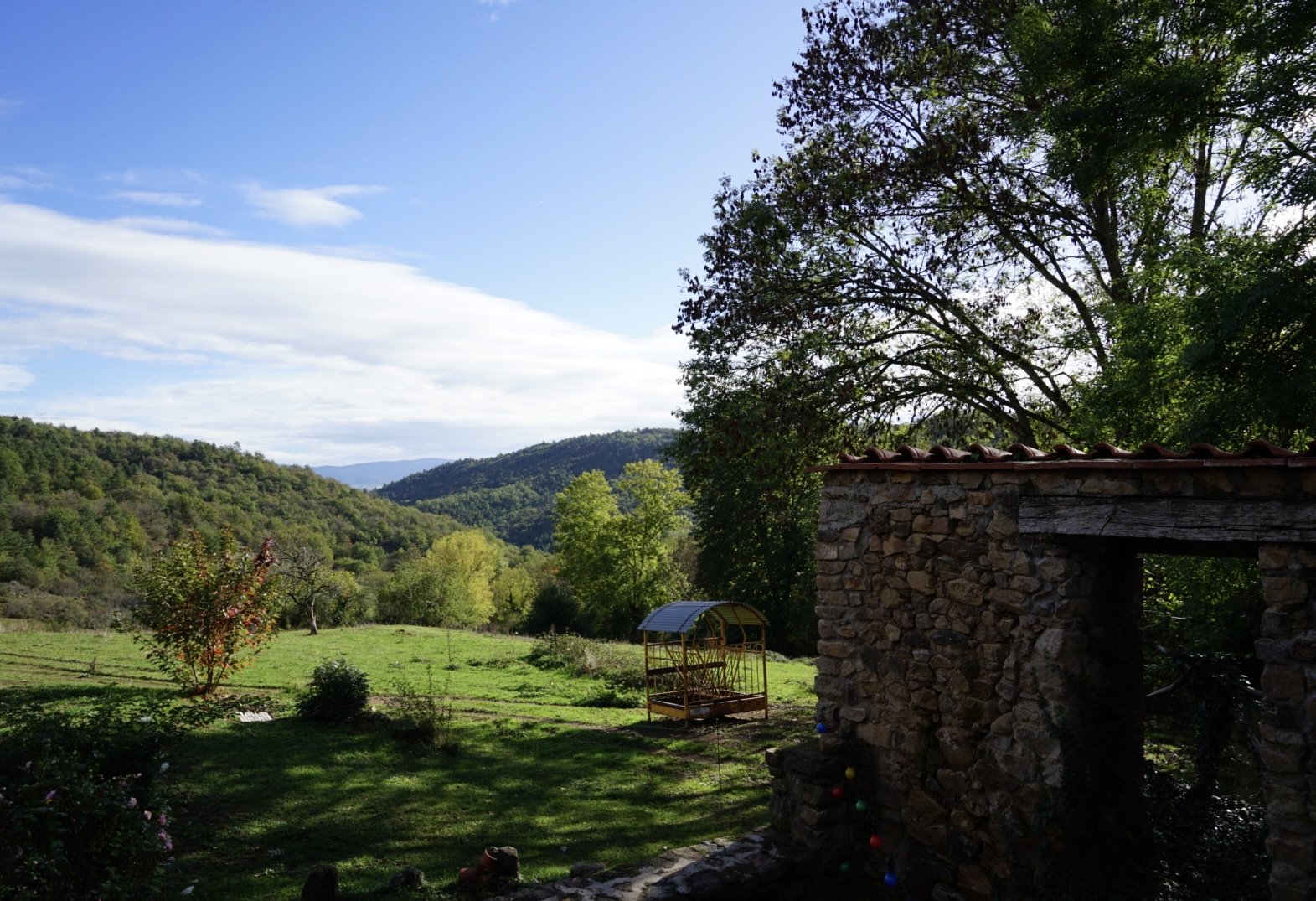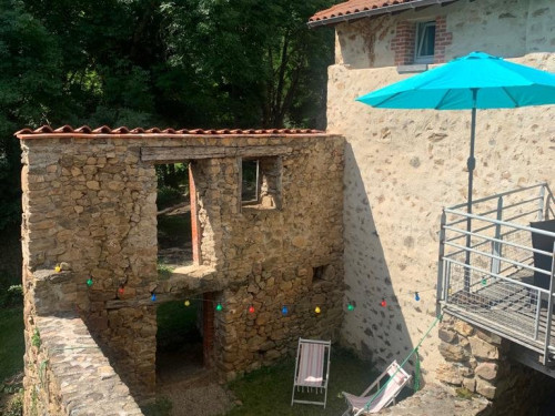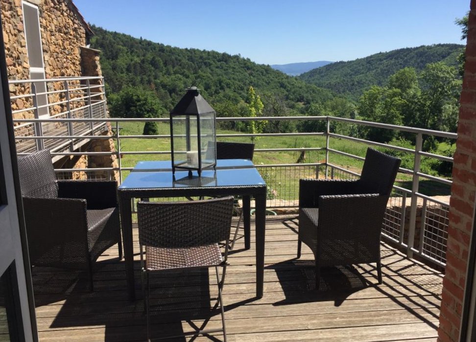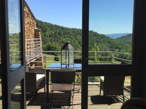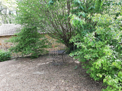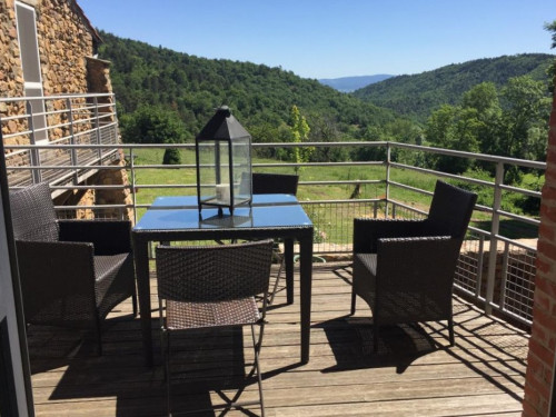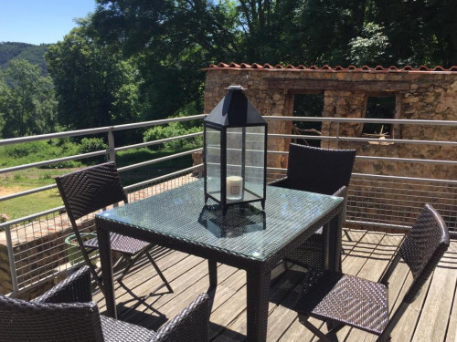 Grande terrasse gravillonnée côté Ouest, une terrasse balcon côté Est avec la vue sur la vallon, un jardin patio, une grande cave voûtée sont à votre disposition, salon de jardin, transats, hamac.