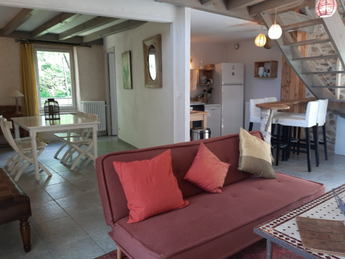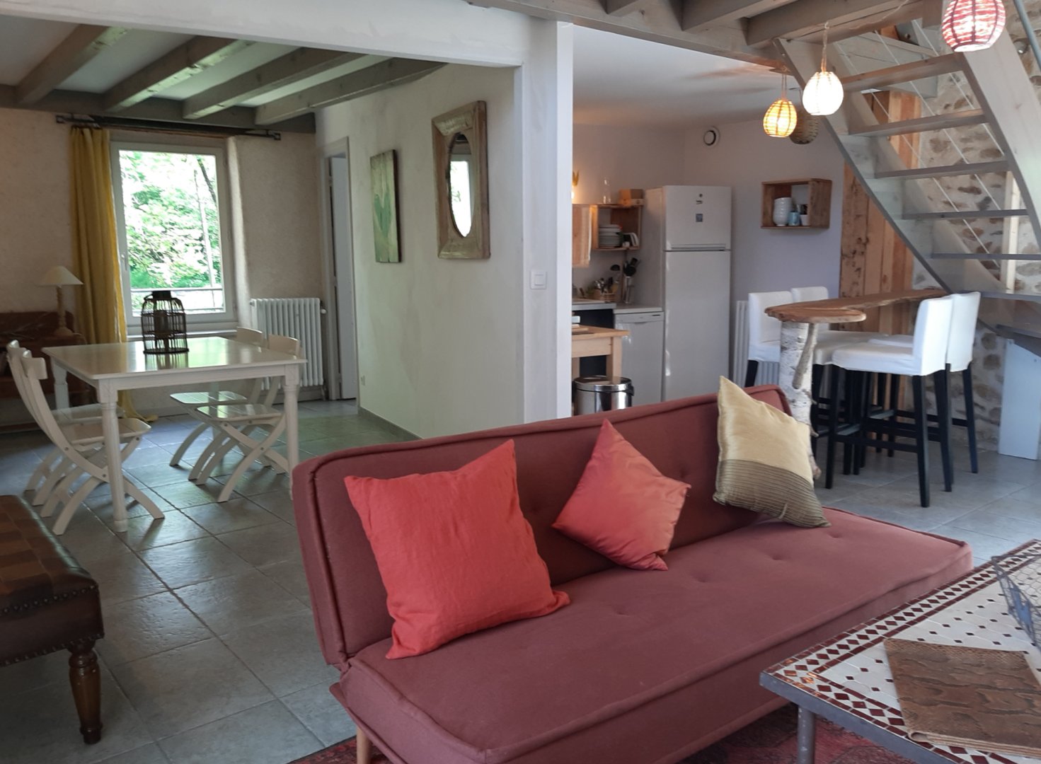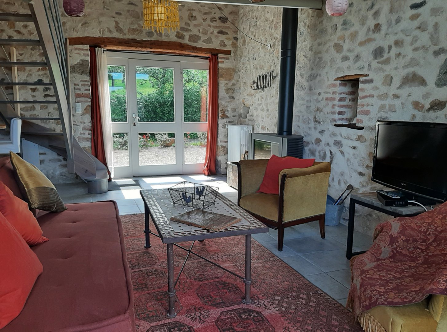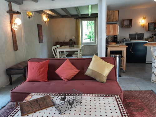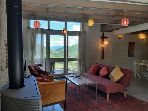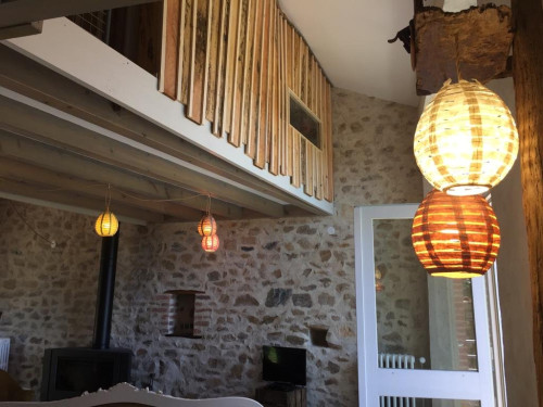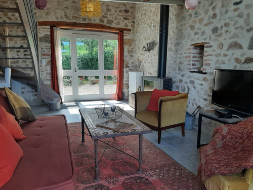 Dans le salon très lumineux et spacieux un poêle à bois (bois en plus) réchauffera vos soirées automnales.