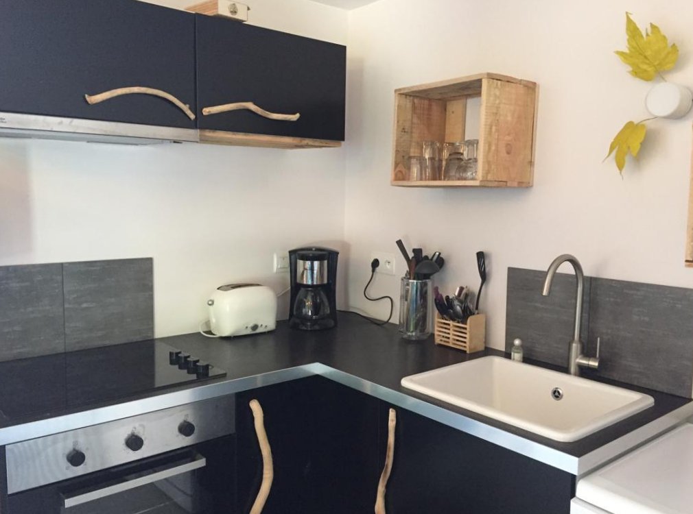 Cuisine ouverte entièrement équipée, lave-vaisselle.