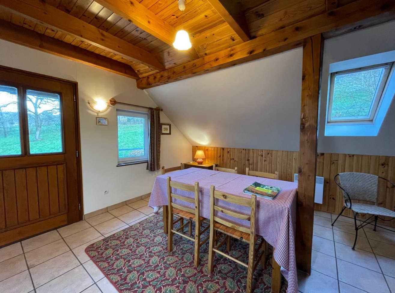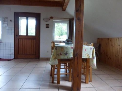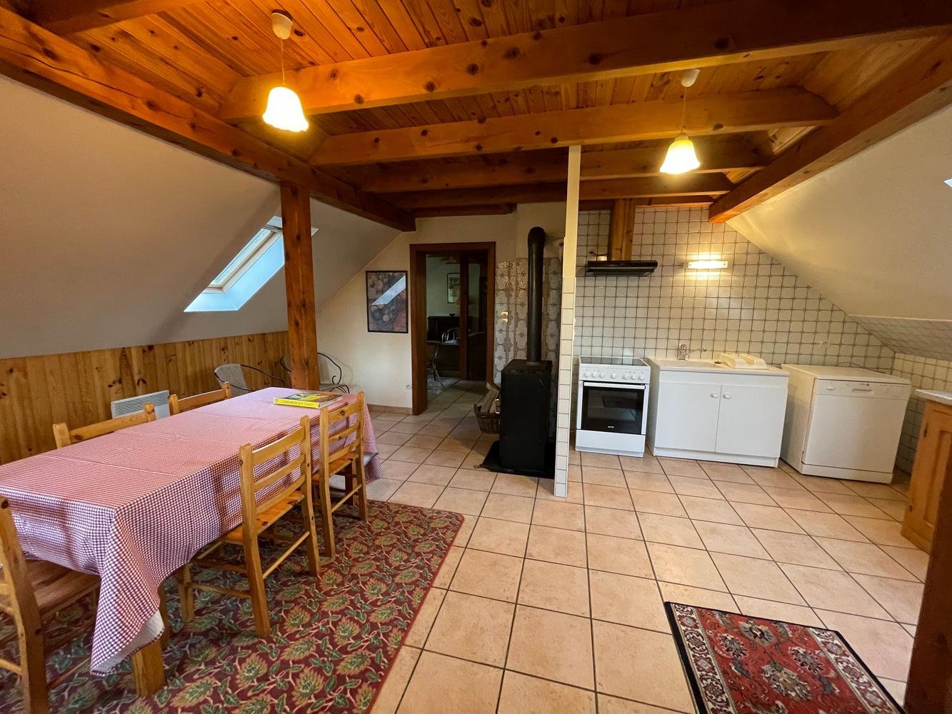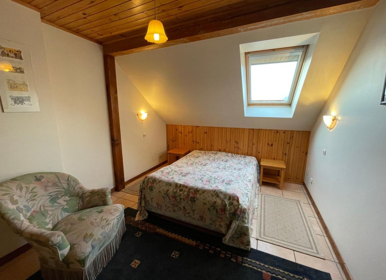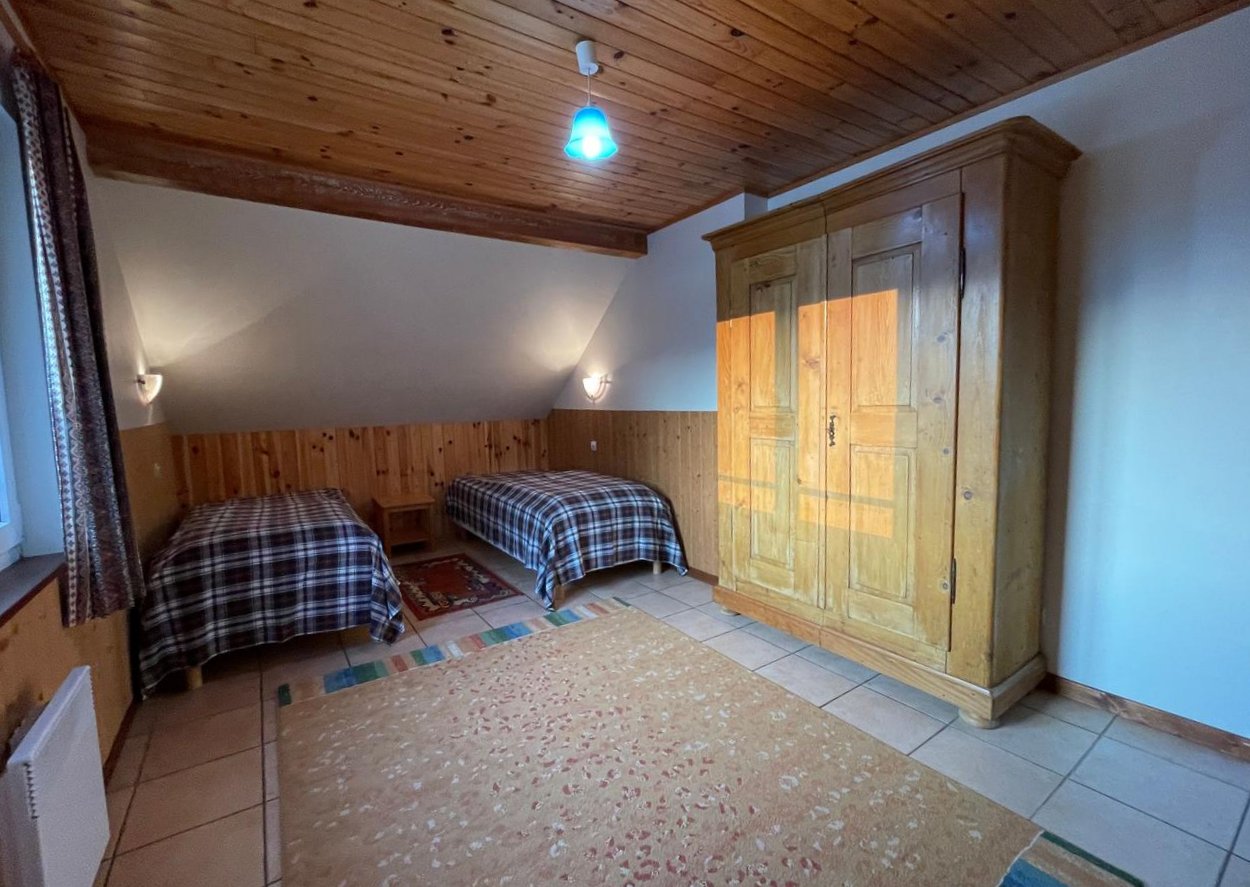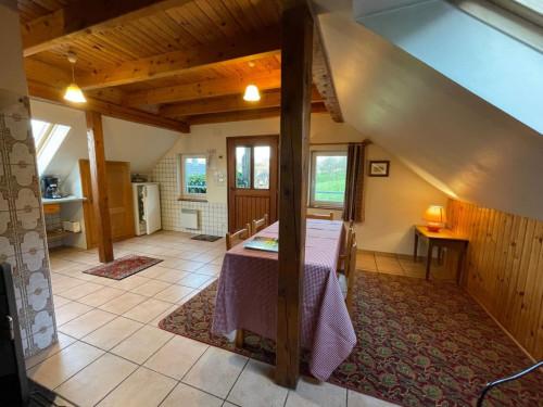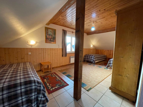 Le gîte occupe tout l'étage, le rez-de-chaussée sert au rangement (bois, local pour vélos, skis).