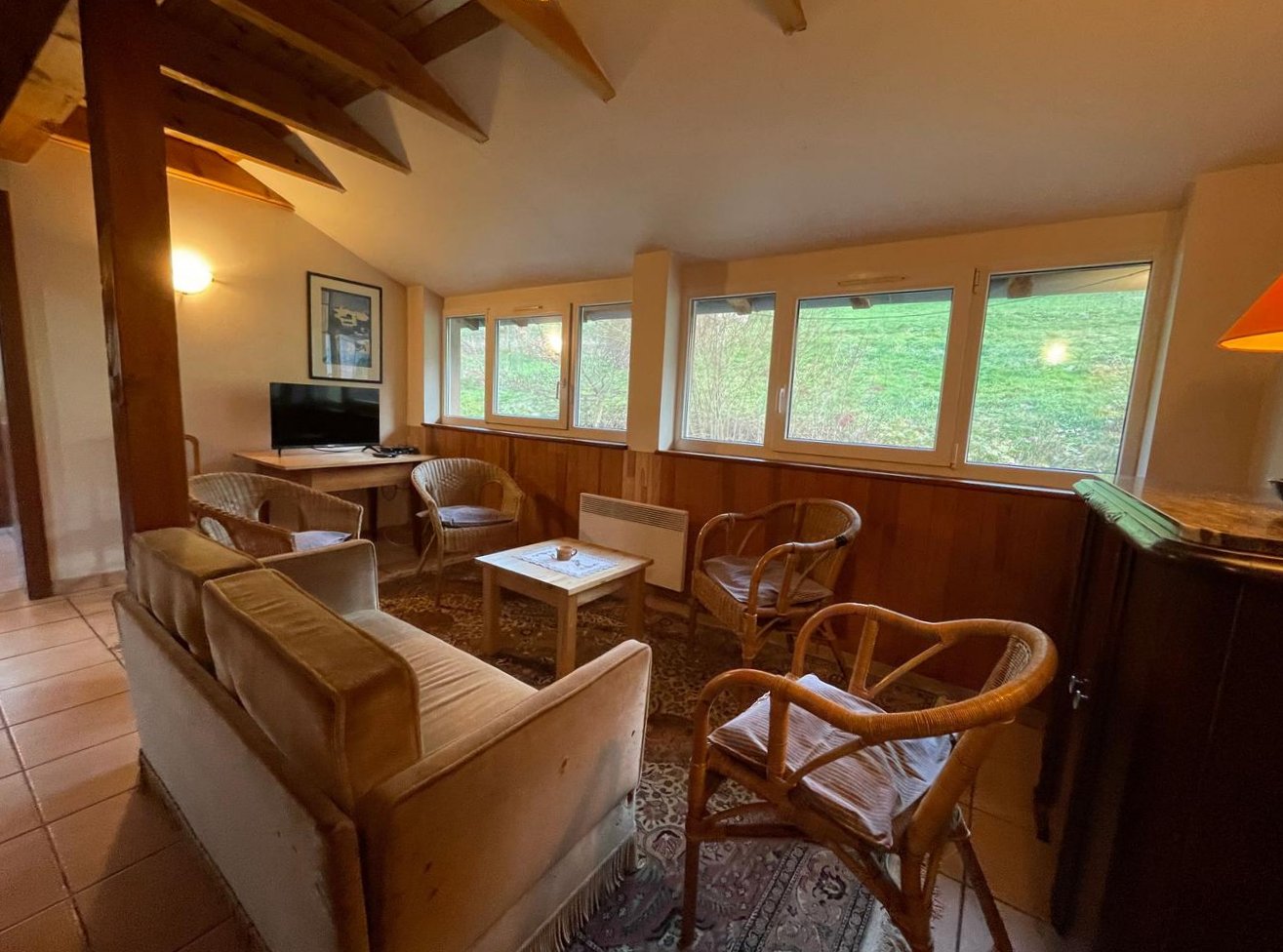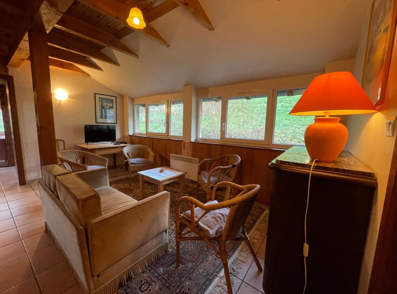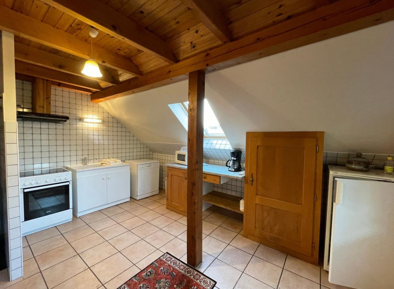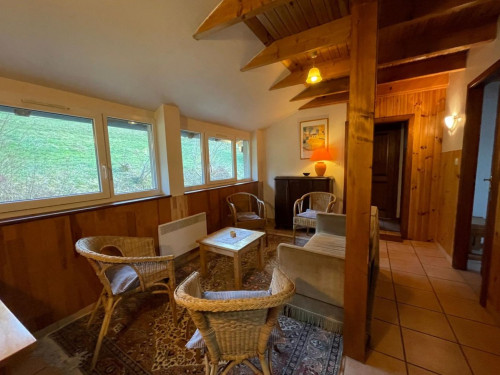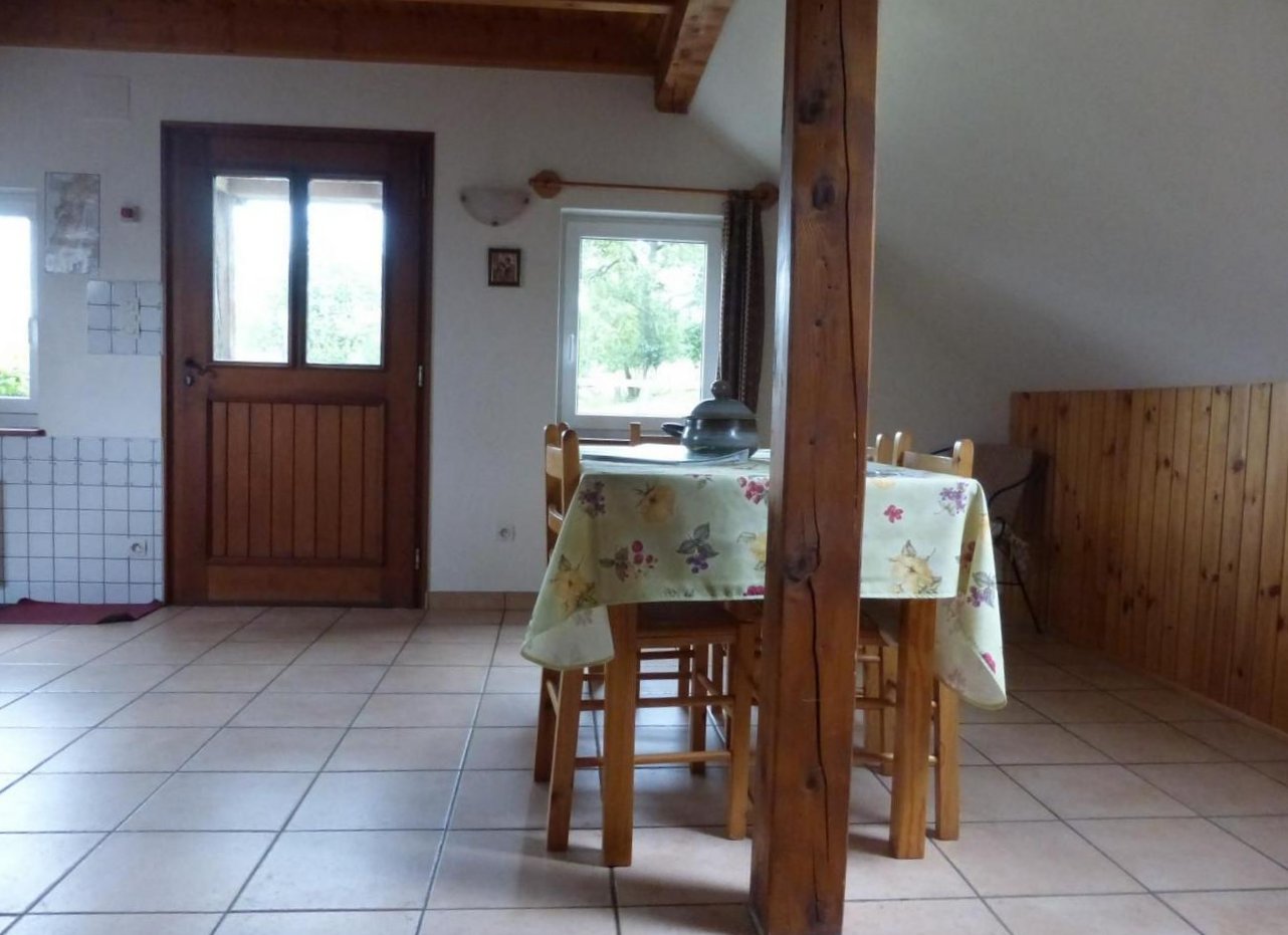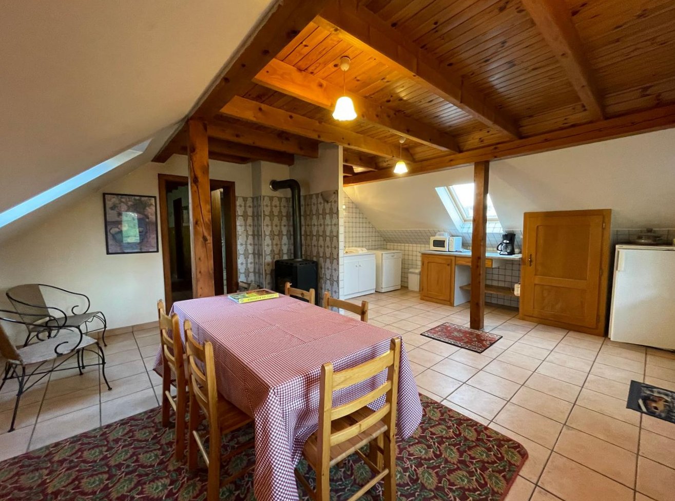 Le gîte occupe tout l'étage, le rez-de-chaussée sert au rangement (bois, local pour vélos, skis).