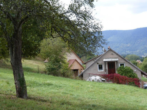 Gîte en Centre Alsace, proche des sites touristiques (Route des Vins, Haut-Koenigsbourg, …), maison en bordure de village, cadre de prés et collines, terrasse de 20 m², chauffage inclus, chemins de promenade et de randonnée en sortant du gîte, proche d'une piste cyclable.