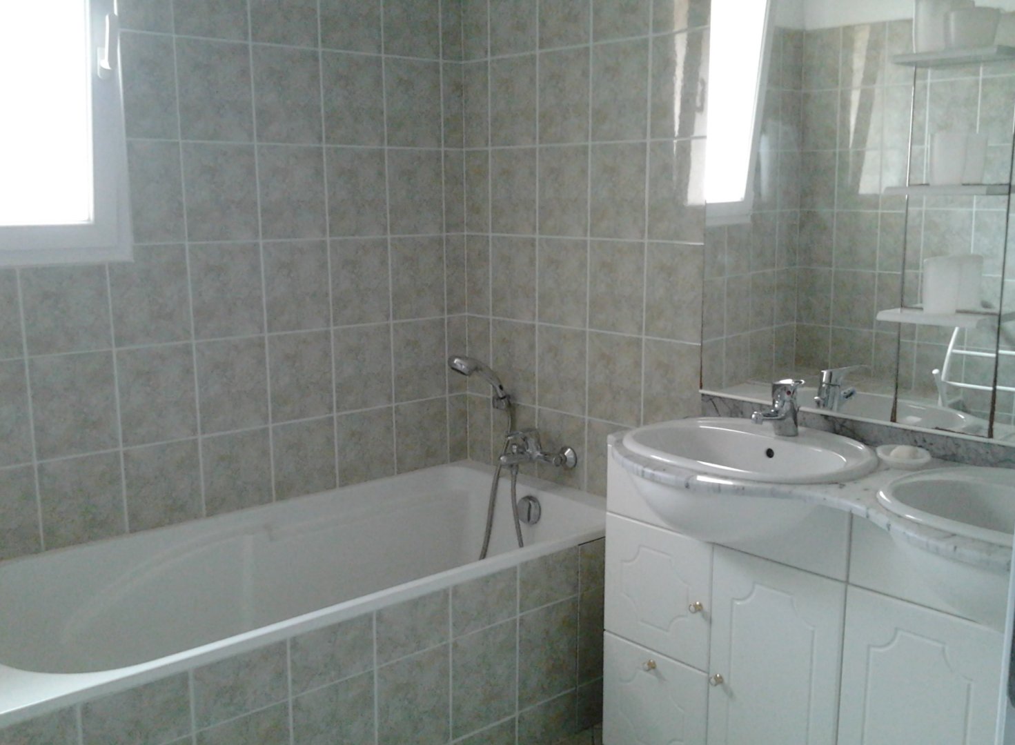 Salle de bains 1 : Douche, Baignoire, Vasque, Sèche-cheveux