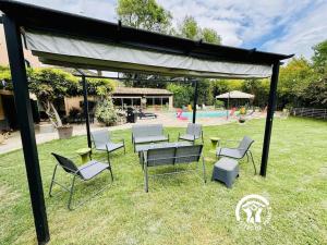En plus de la piscine extérieure, l’établissement Gîte Carcassonne comprend une terrasse.