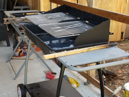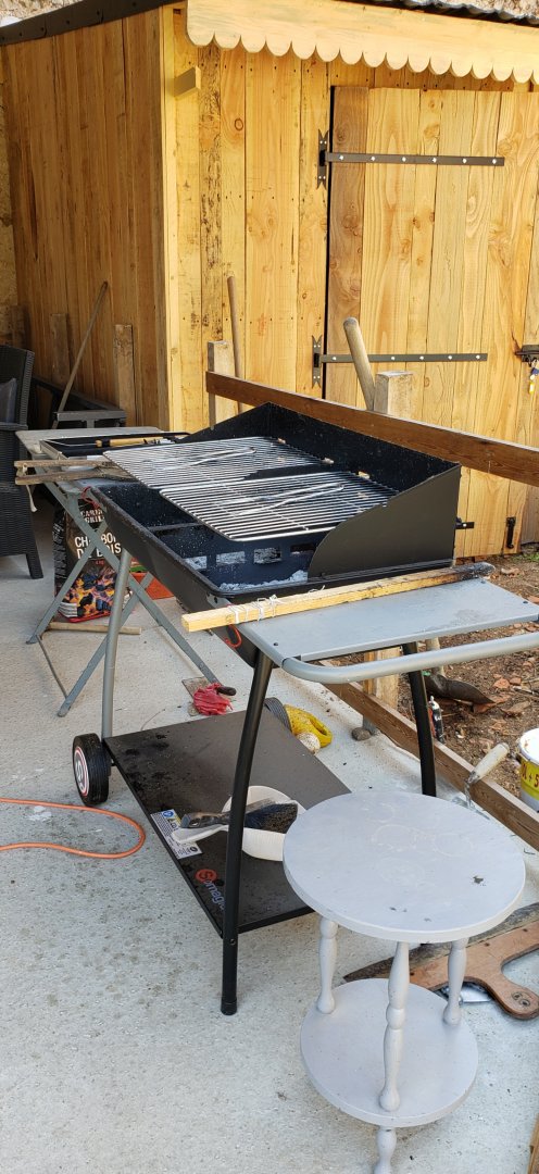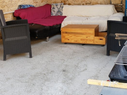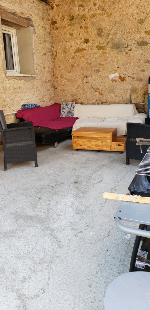 Espace extérieur couvert avec barbecue et espace fumeur, en commun avec les propriétaires.