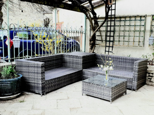 Profitez d’un patio ombragé, équipé d’une table et de 4 chaises (disponible du 15 mai au 1er septembre) pour vos repas en plein air ou une pause lecture.