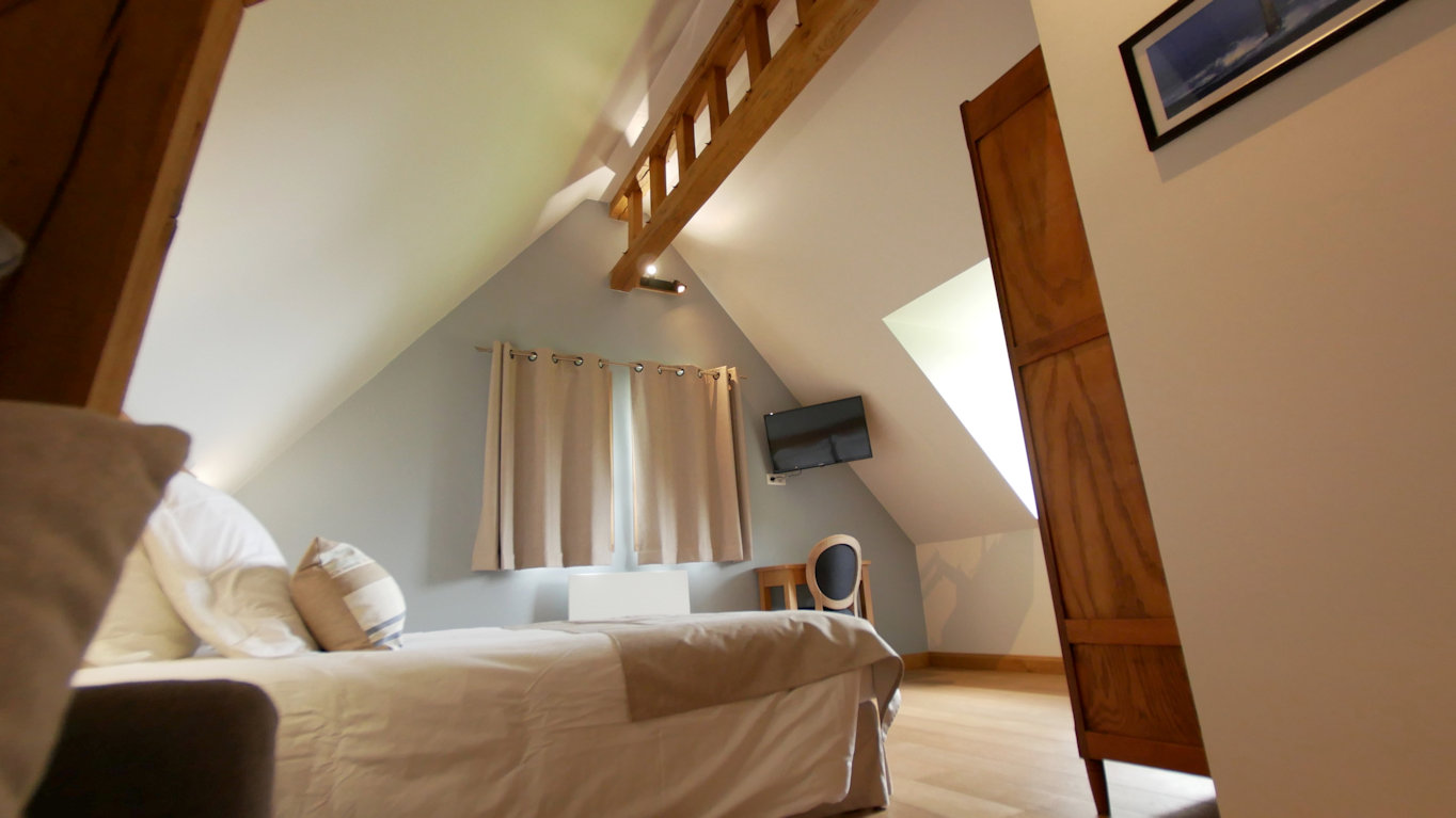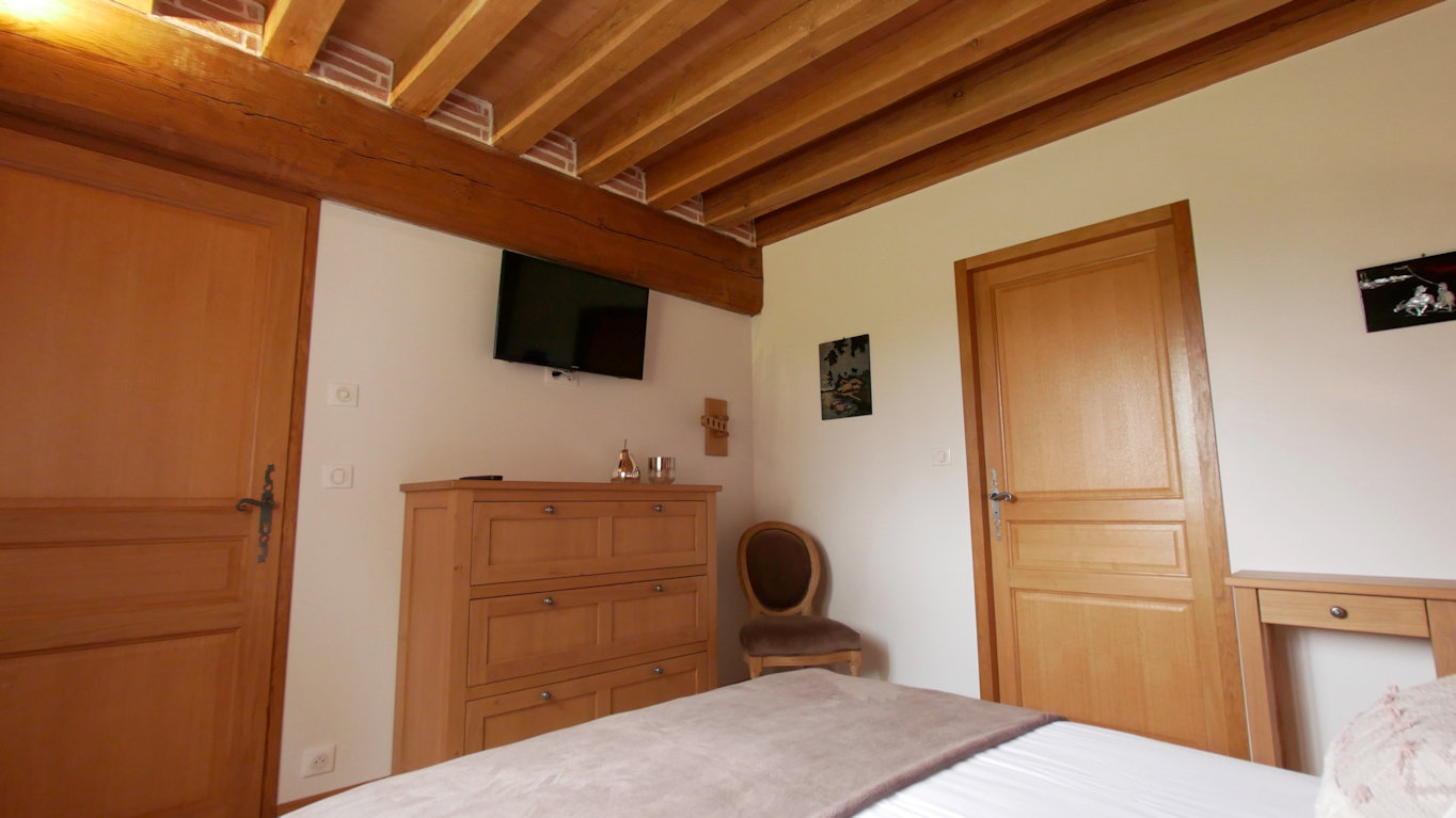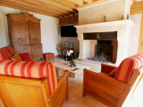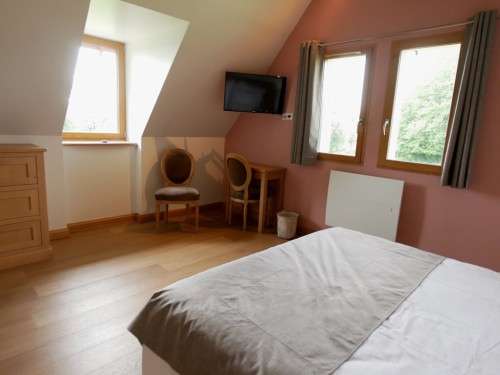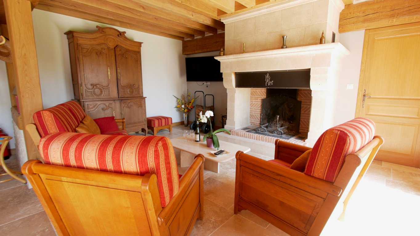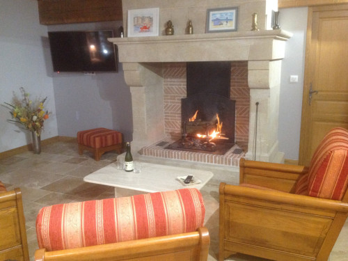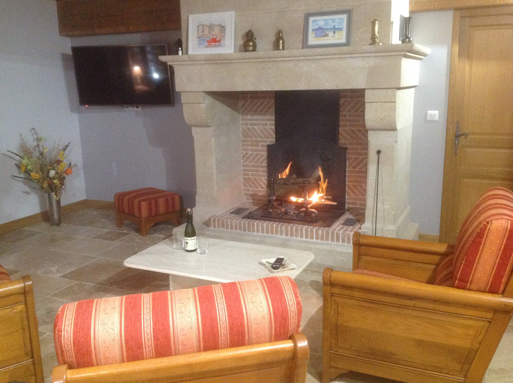 Les petits plus du Gîte de La Poiraie : la chambre et la salle d'eau au rez-de-chaussée et la grande cheminée.