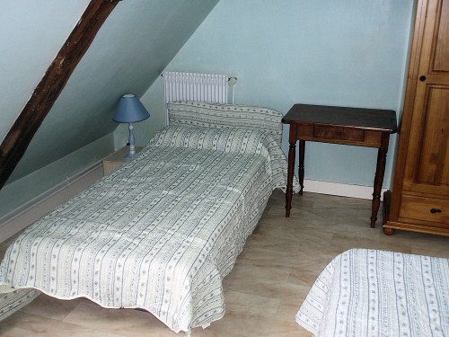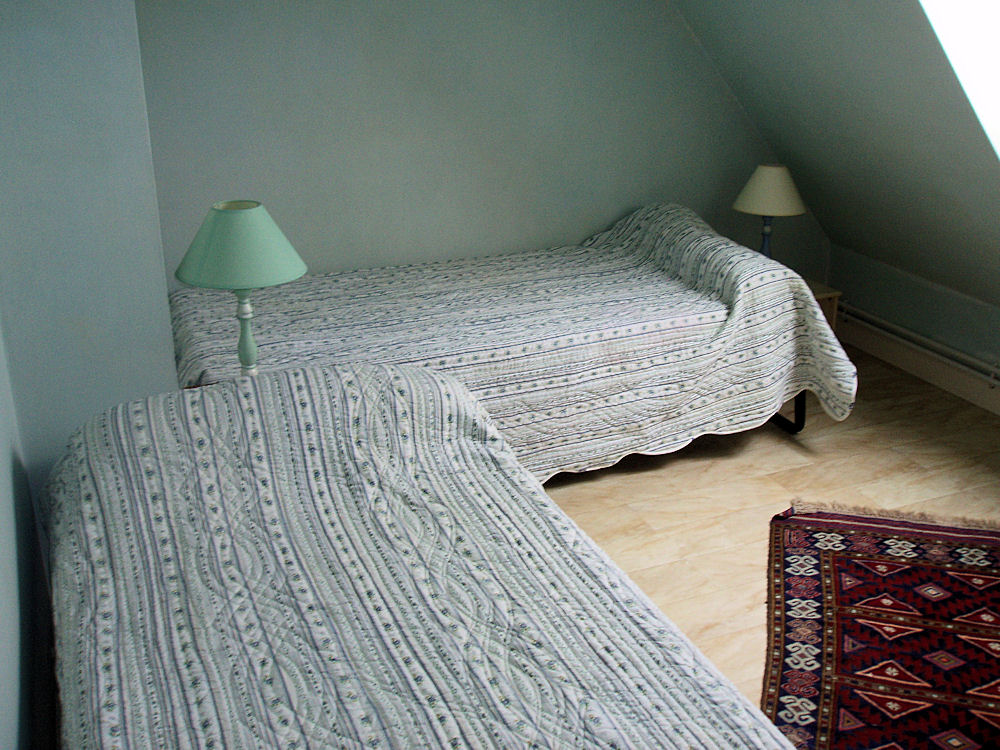 Etage : 2 chambres avec chacune 3 lits simples et une salle de bain douche avec toilettes pour les deux chambres