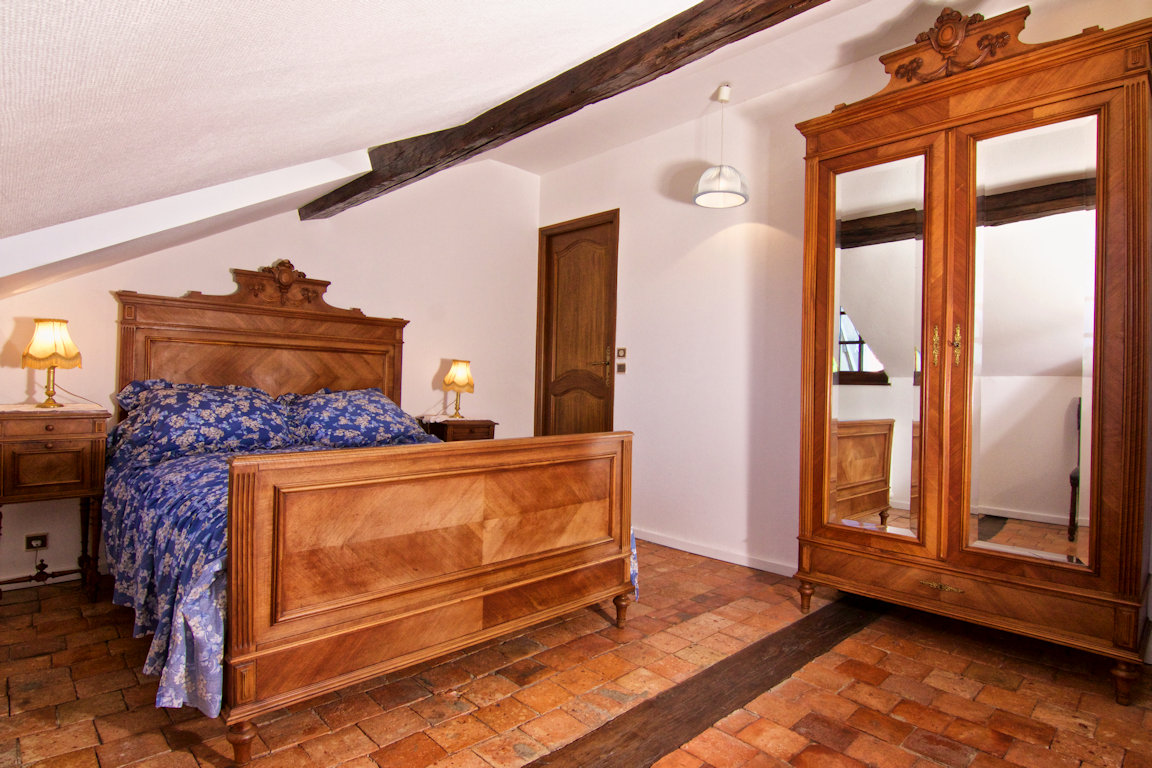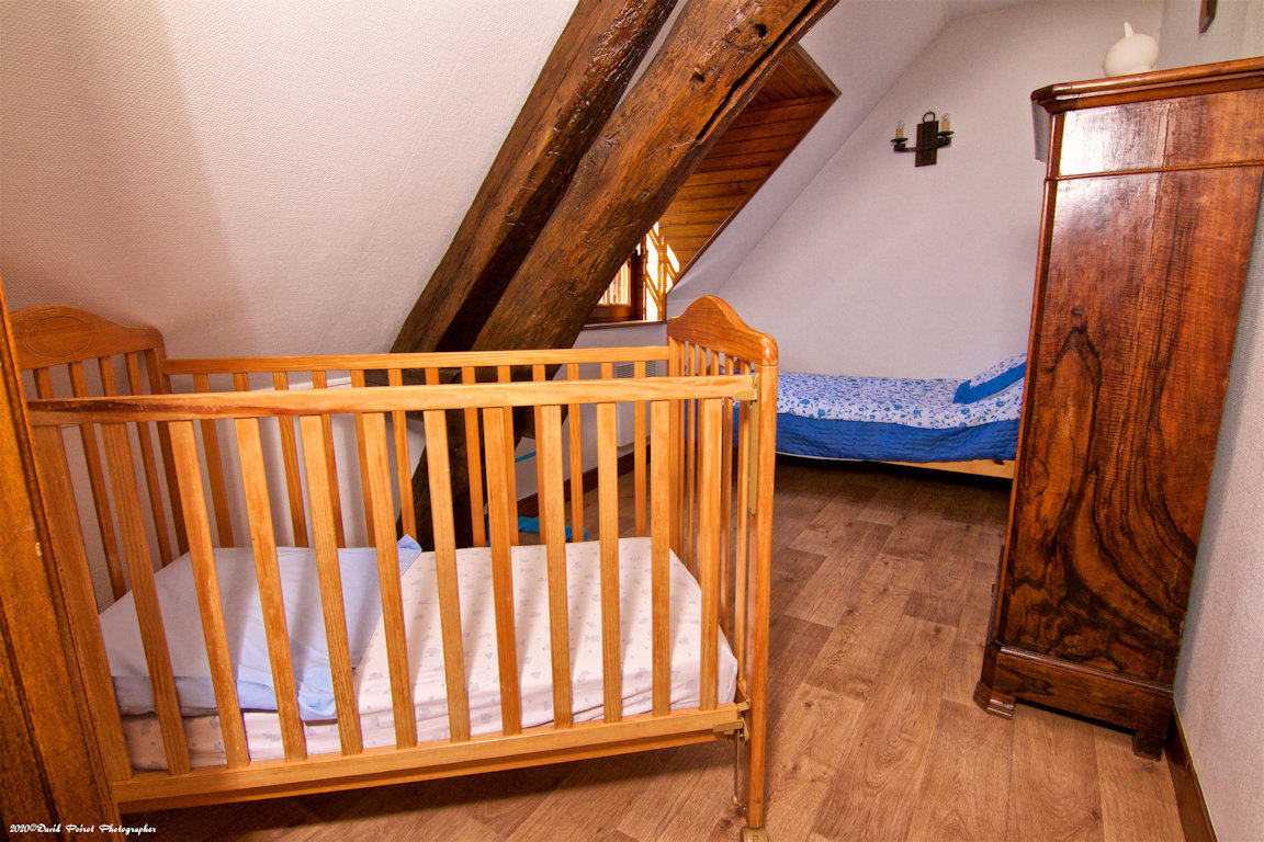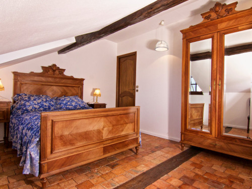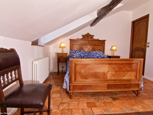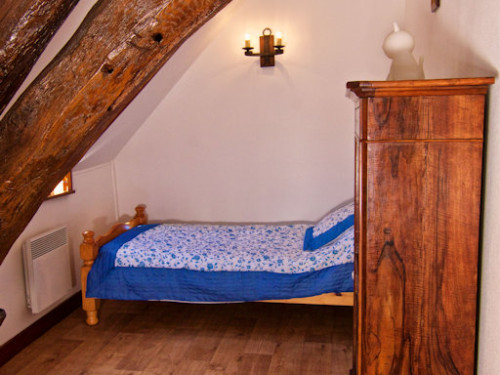• à l'étage : 3 chambres dont 2 équipées avec lit double de 140 et 1 avec lit simple de 90. 1 salon. Salle de bain/WC