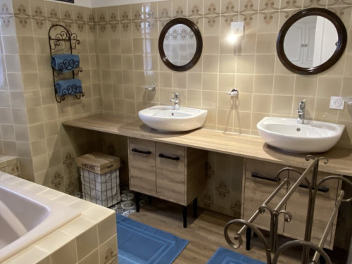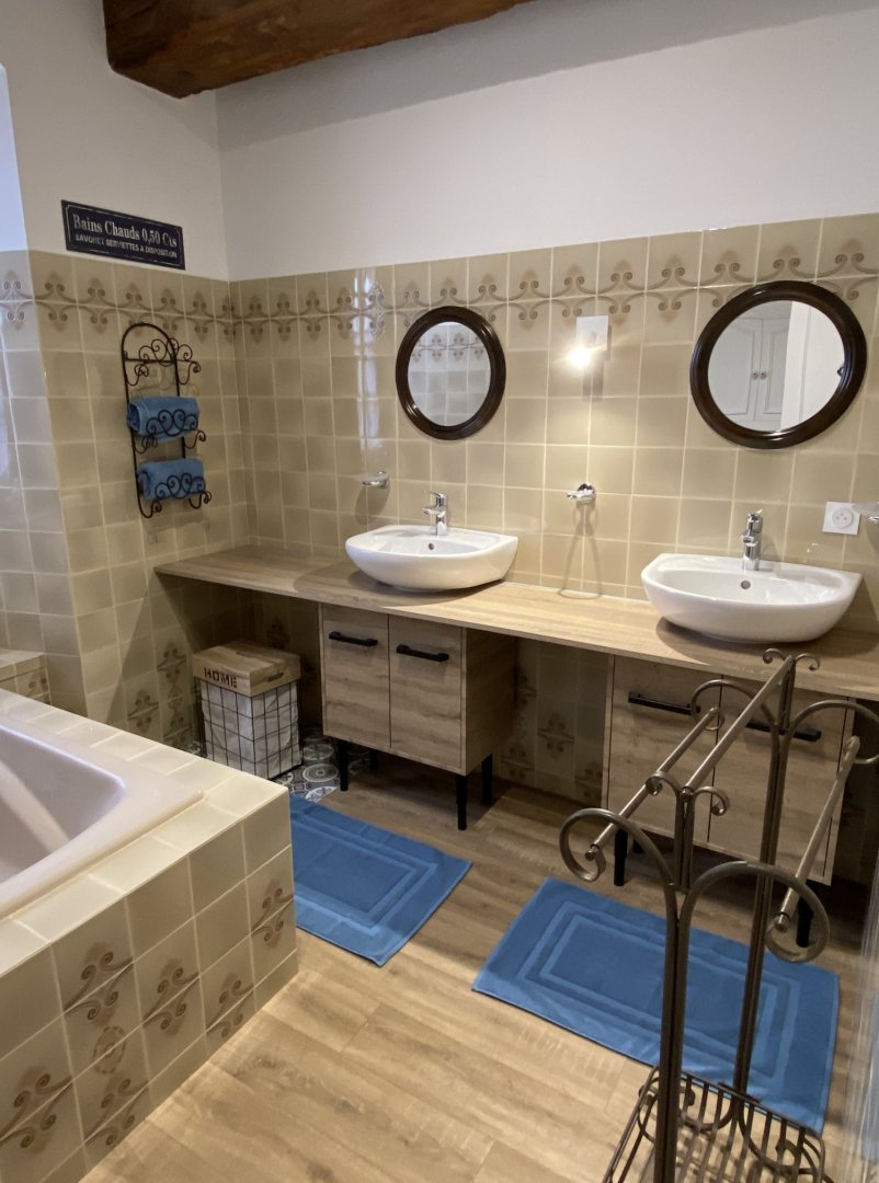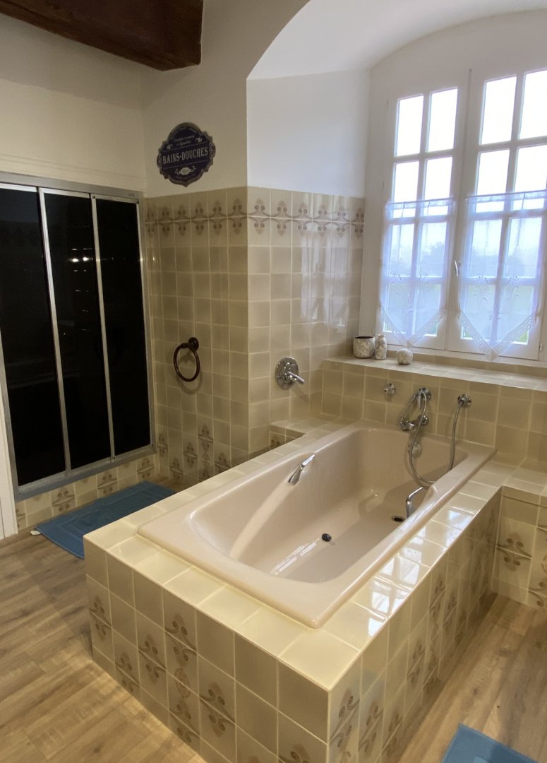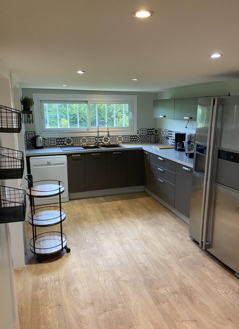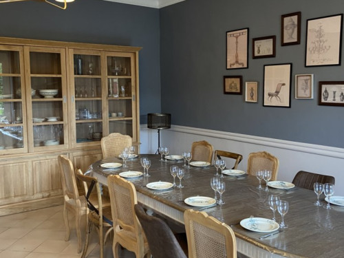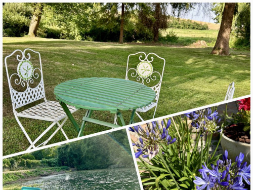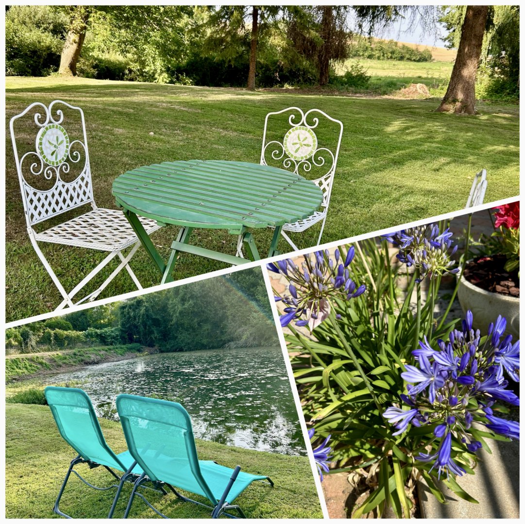2 salles de bain, 2 WC, bureau, wifi, cuisine équipée, salle à manger, terrasse, grand jardin clos à l’arrière , étang (non sécurisé)