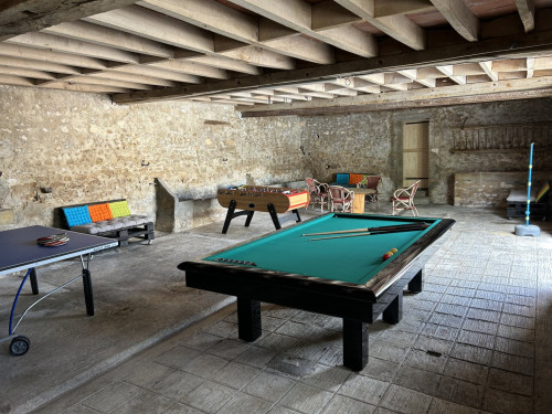 Une pièce extérieure avec table ping-pong, baby foot et billard