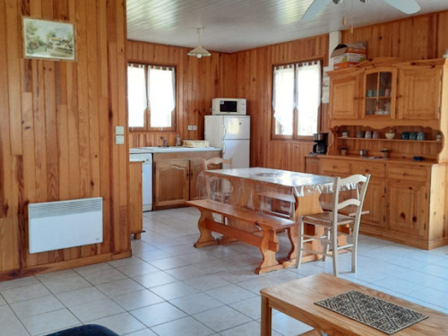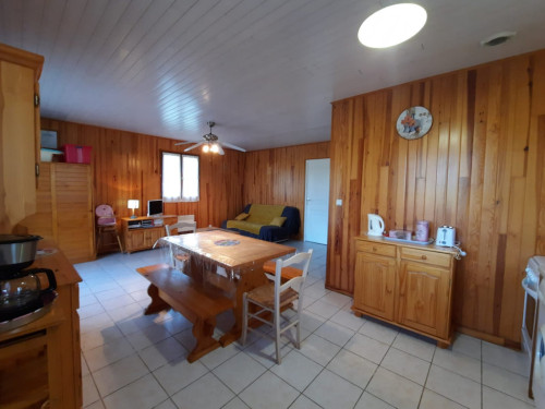 En ce qui concerne le gîte, la pièce principale réunie le salon, la salle à manger et la cuisine toute équipée qui vous permettra de vous y sentir comme chez vous pour préparer vos repas et profiter de vos instants détentes en famille ou entre ami(e)s. Vous trouverez à votre disposition une télé et des jeux de sociétés.