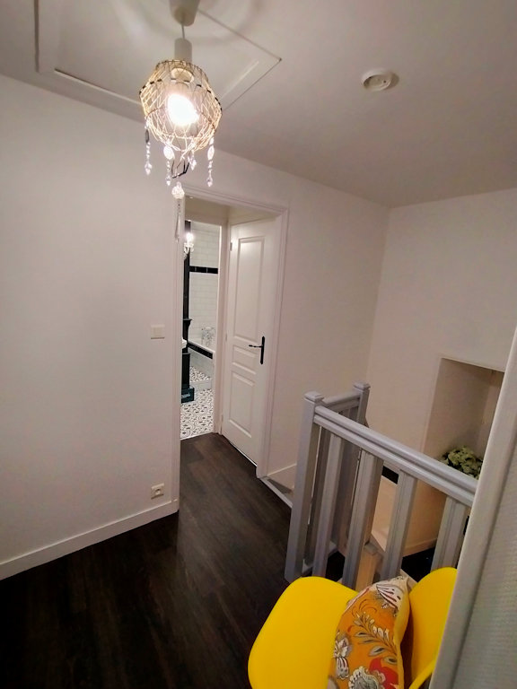 À l’étage, le palier dessert 3 chambres, une salle de bain avec douche et baignoire, et 1 WC séparé. Une terrasse avec salon de jardin et barbecue.