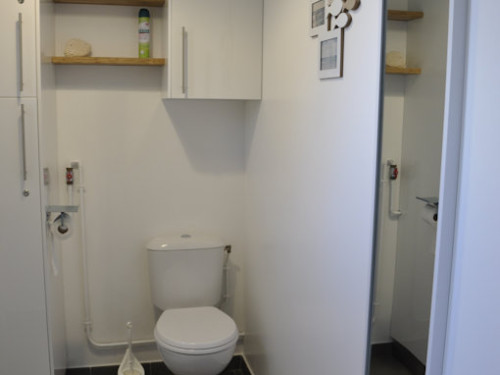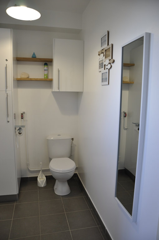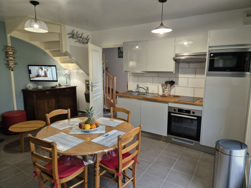 - Au rez-de-chaussée : cuisine équipée avec lave-vaisselle, micro-ondes, plaque induction, réfrigérateur/petit congélateur, ustensiles et appareils ménagers. Canapé, télévision. WC avec lave mains (pièce séparée dans l'entrée et ne donnant pas sur la pièce de vie)