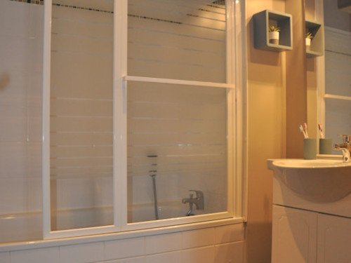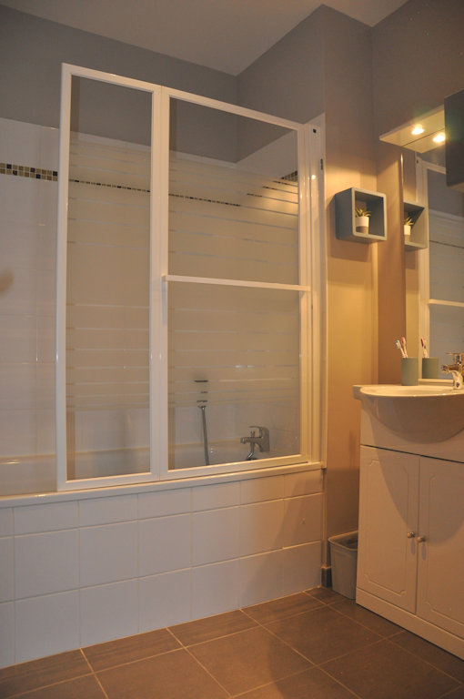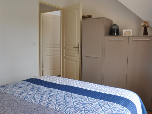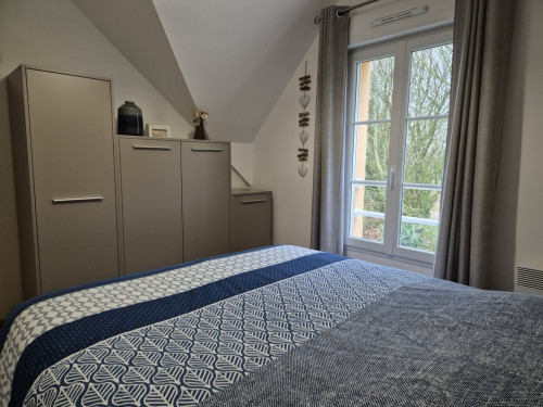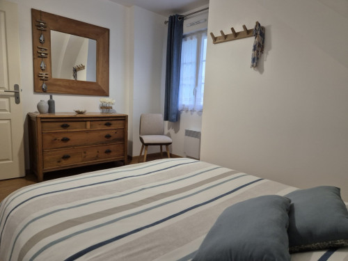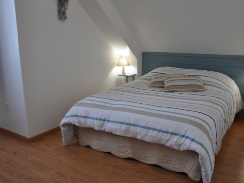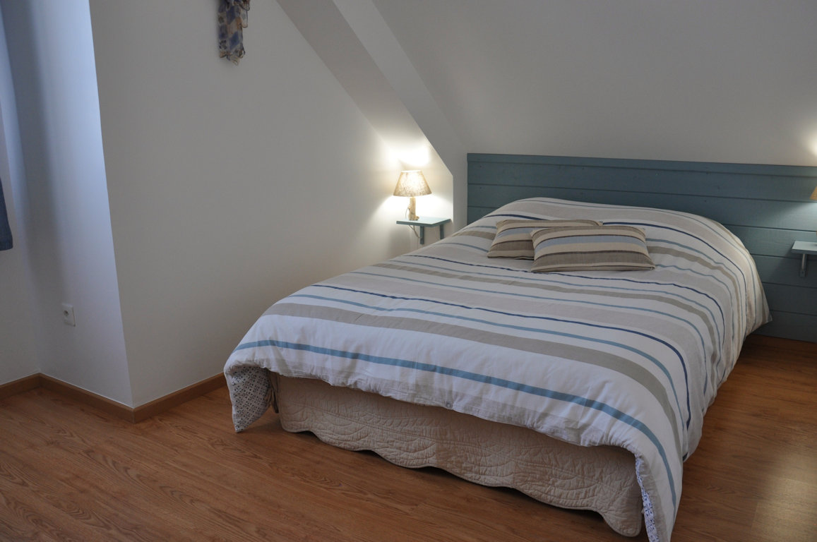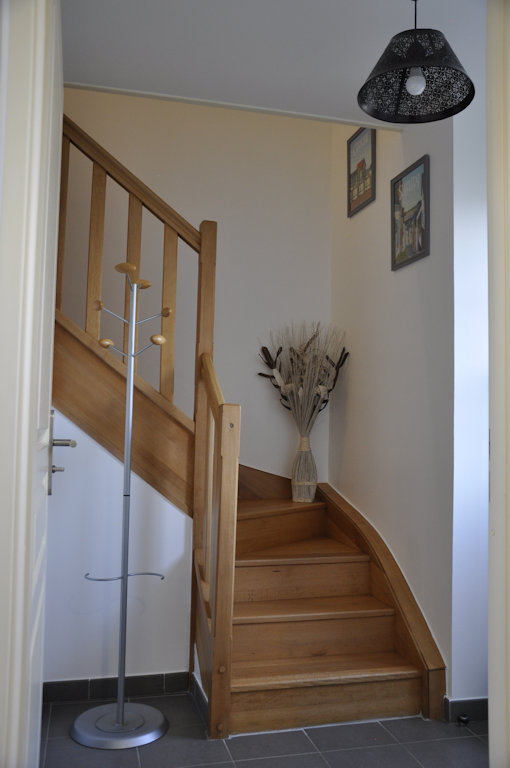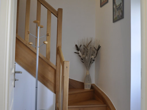 - À l'étage : 1 chambre avec 1 lit 160x200, 1 chambre avec 1 lit 140x190, 1 salle de bains avec baignoire et lave linge