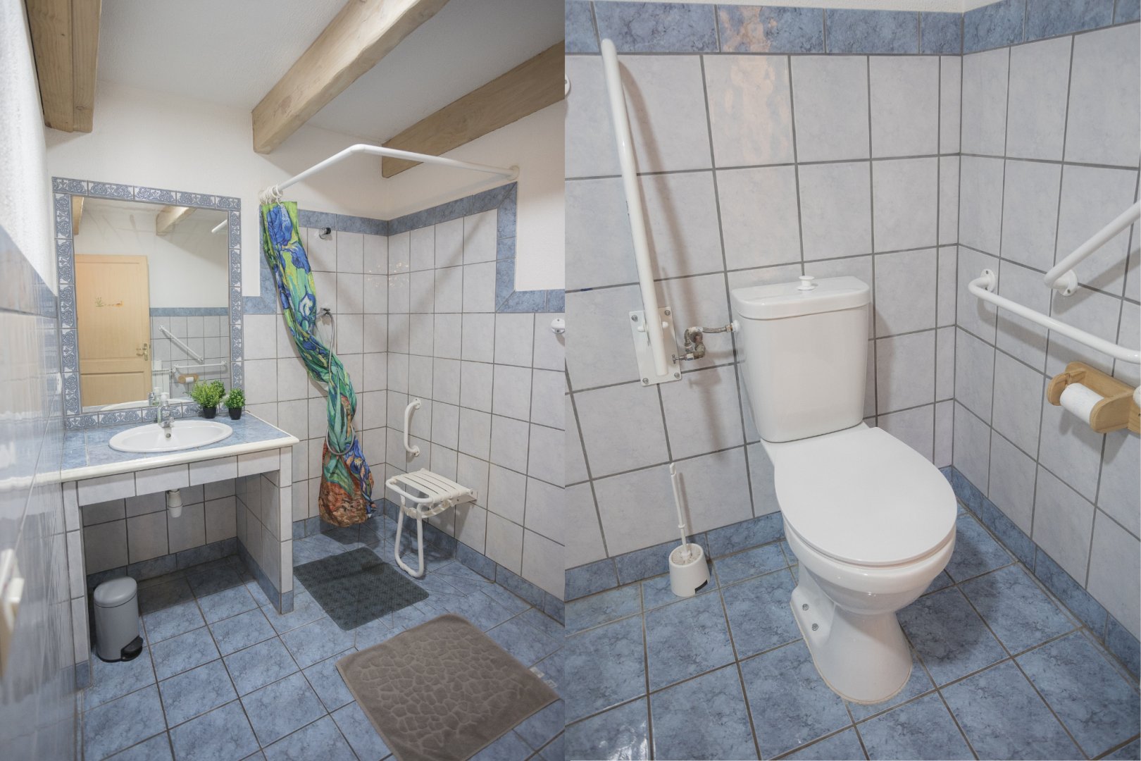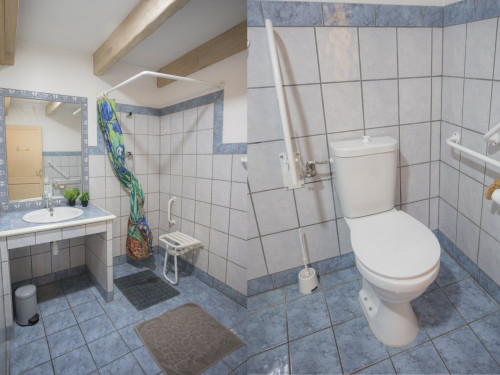 - 1 salle de douche, WC avec vasque et sèche cheveux