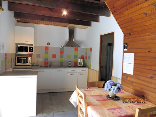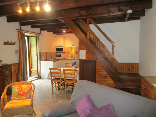 Au rez-de-chaussée, vous avez le salon avec 1 poêle à bois pour les soirées d'hiver, la cuisine équipée et la salle d'eau avec wc.