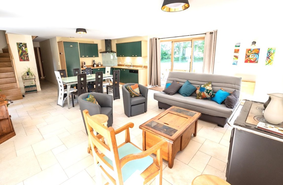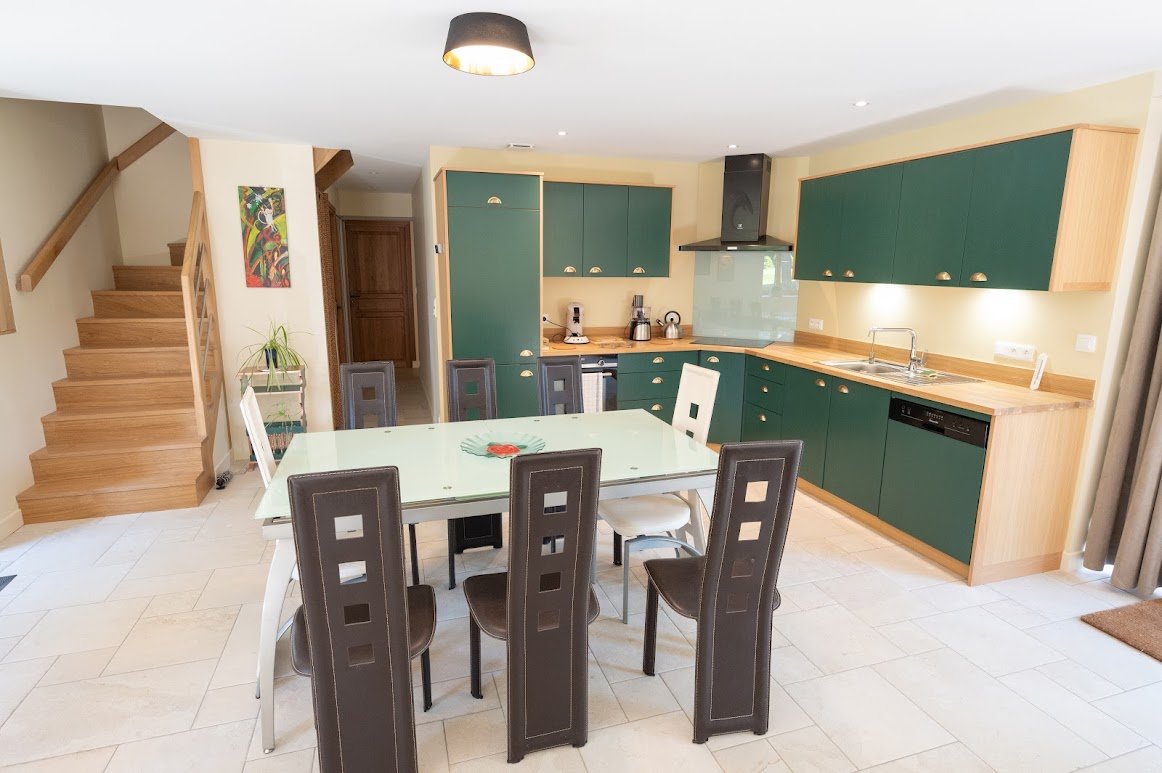 La maison vous offre un espace entièrement rénové avec des matériaux de qualité, décoration intérieure soignée, une cuisine aménagée avec lave-vaisselle, four à chaleur tournante, frigo et congélateur, lave-linge.