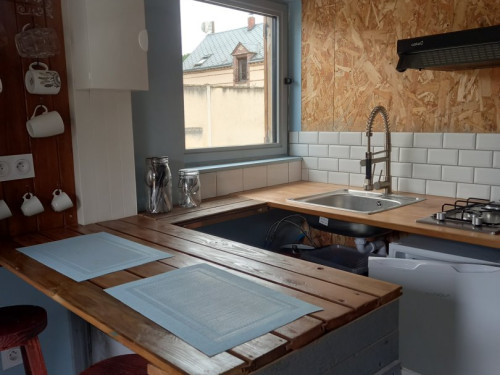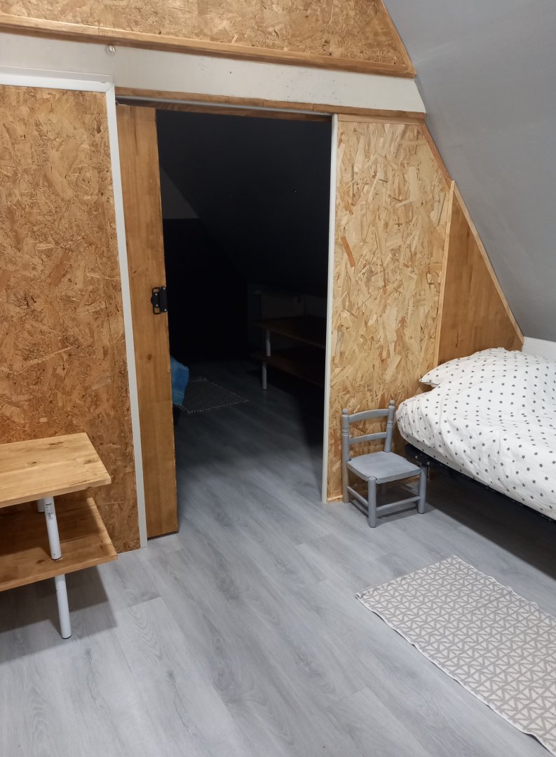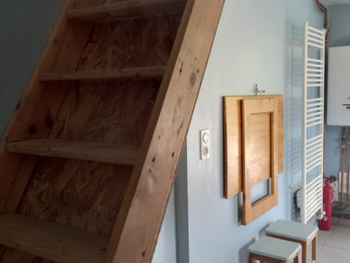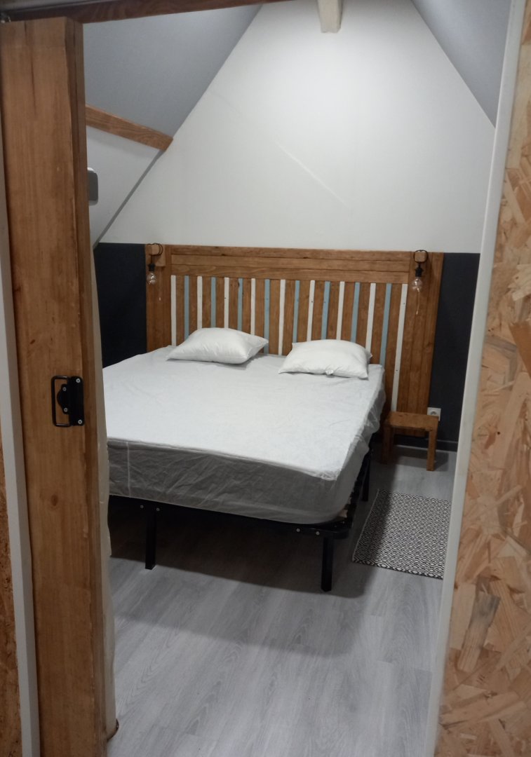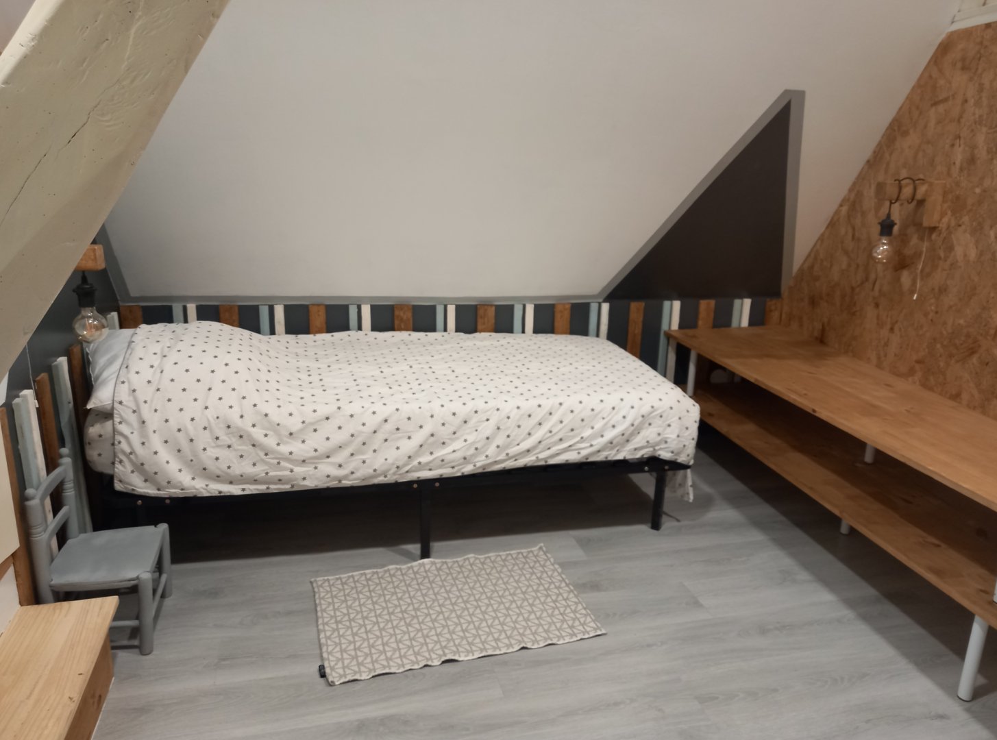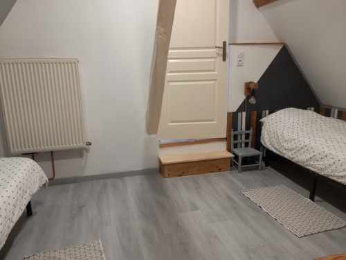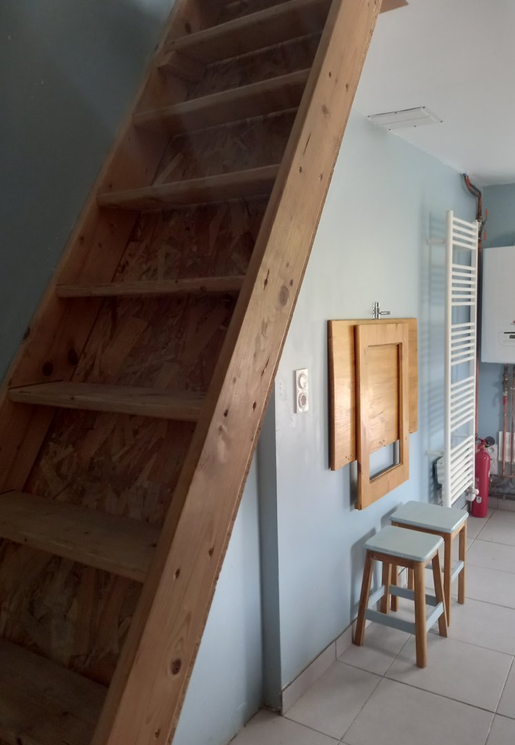 À l'étage, accessible par un escalier CERTES RAIDE, il y a un salon et 2 chambres (2 petits lits, 1 lit double). Pas besoin de vous charger de draps, serviettes ou torchons, je vous prévois tout sur place et même un petit souvenir !