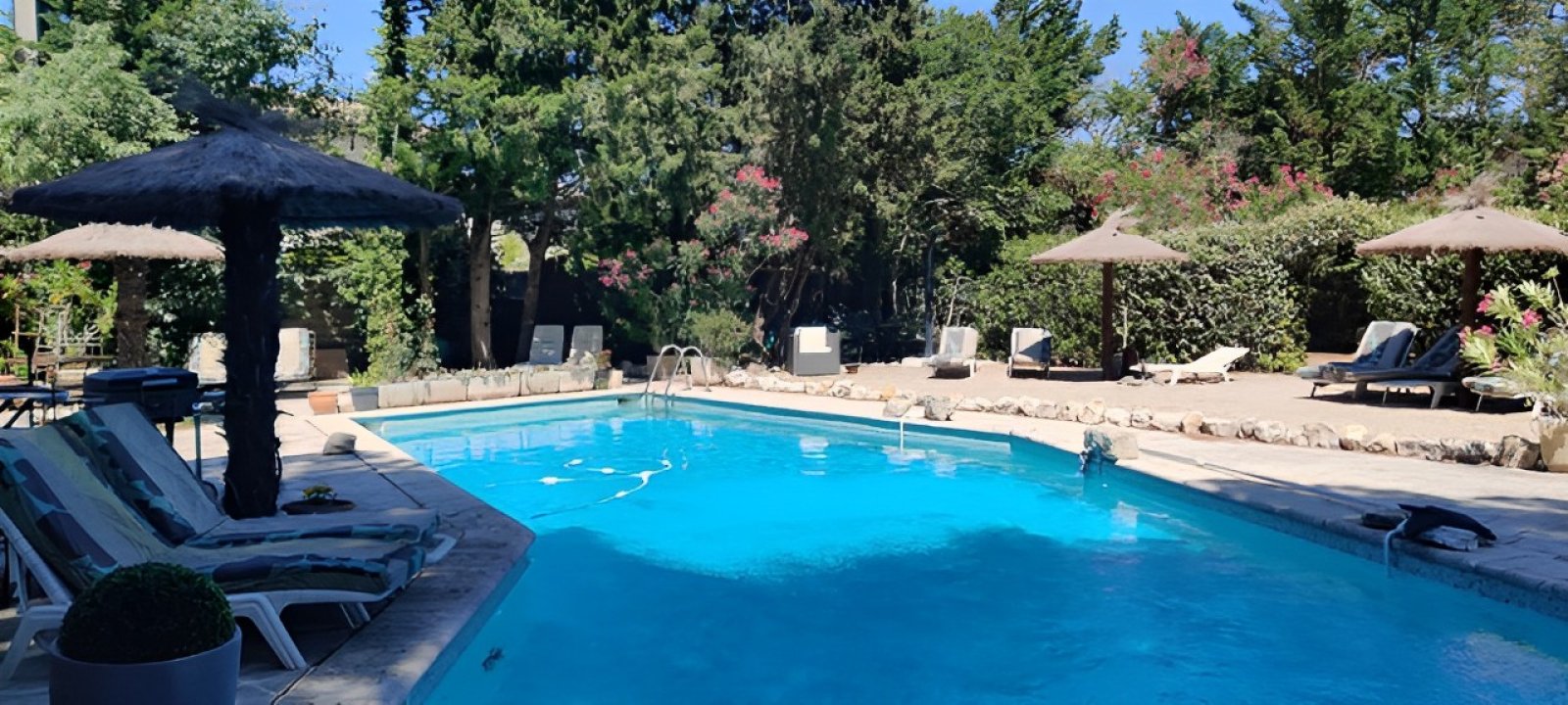 Gîte climatisé avec grande piscine chauffée, face aux Alpilles, à 1, 4 km du centre historique de Saint-Rémy de Provence.
