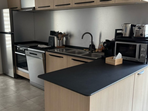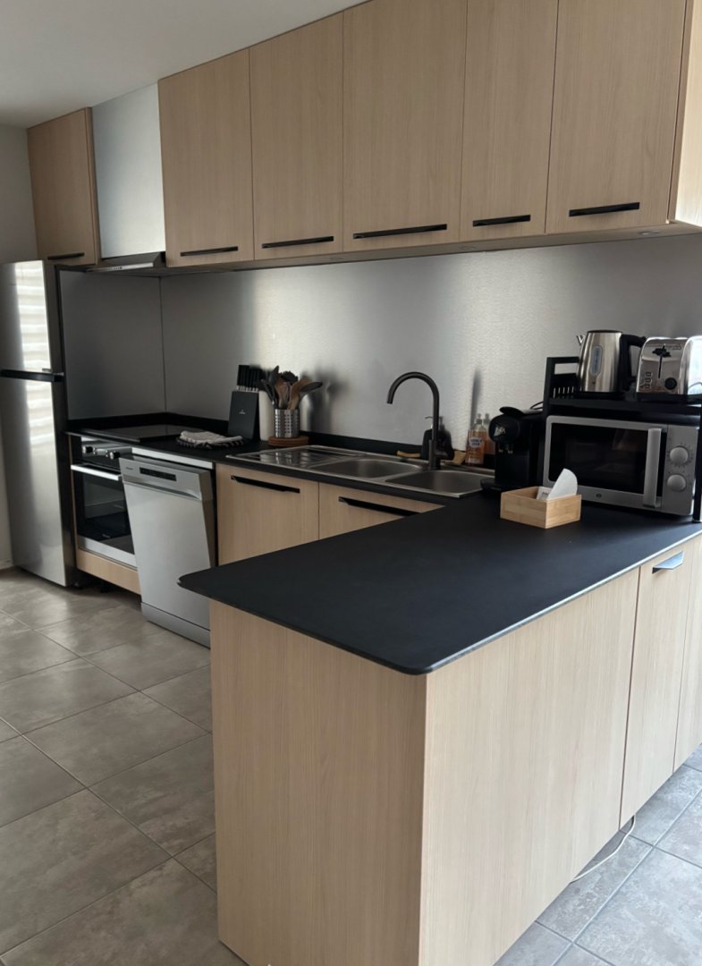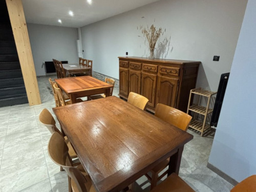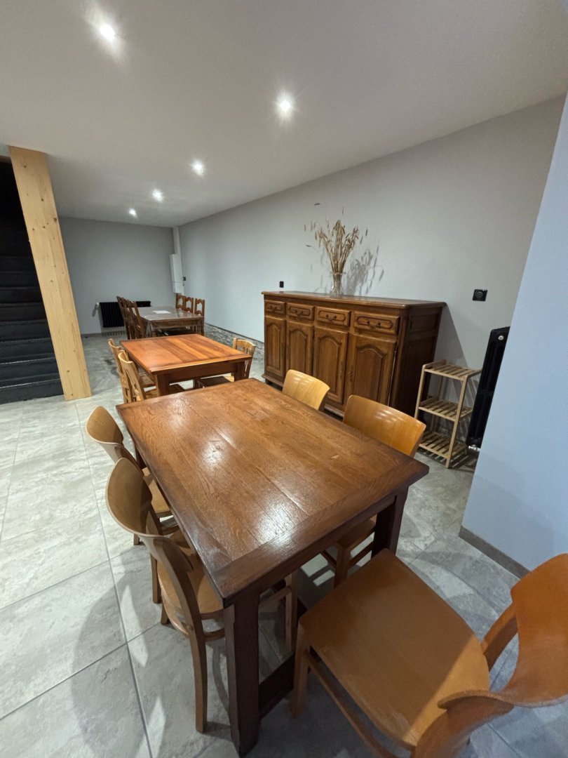 Au RDC se trouve une cuisine entièrement équipée, une salle à manger spacieuse idéale pour partager des repas en groupe.