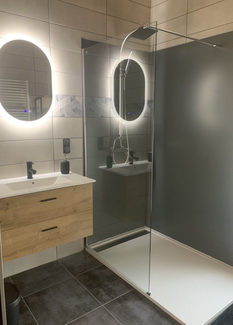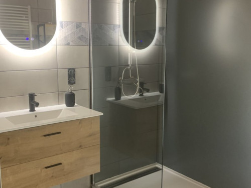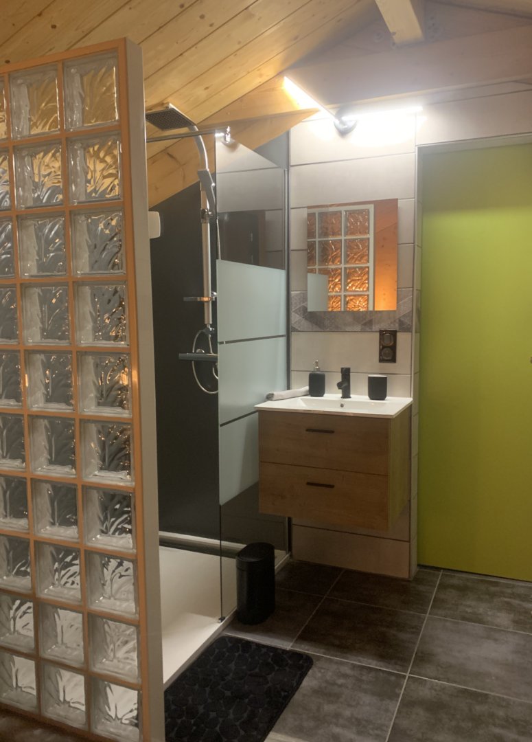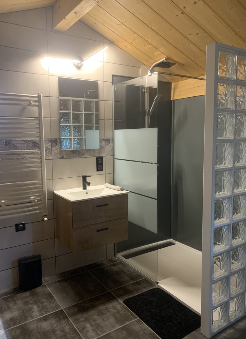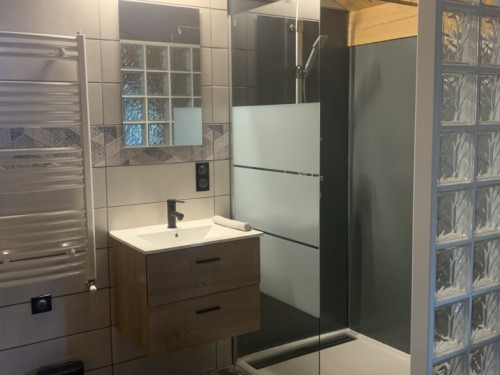 Une salle de bain et un toilette sont disponibles à l'étage.