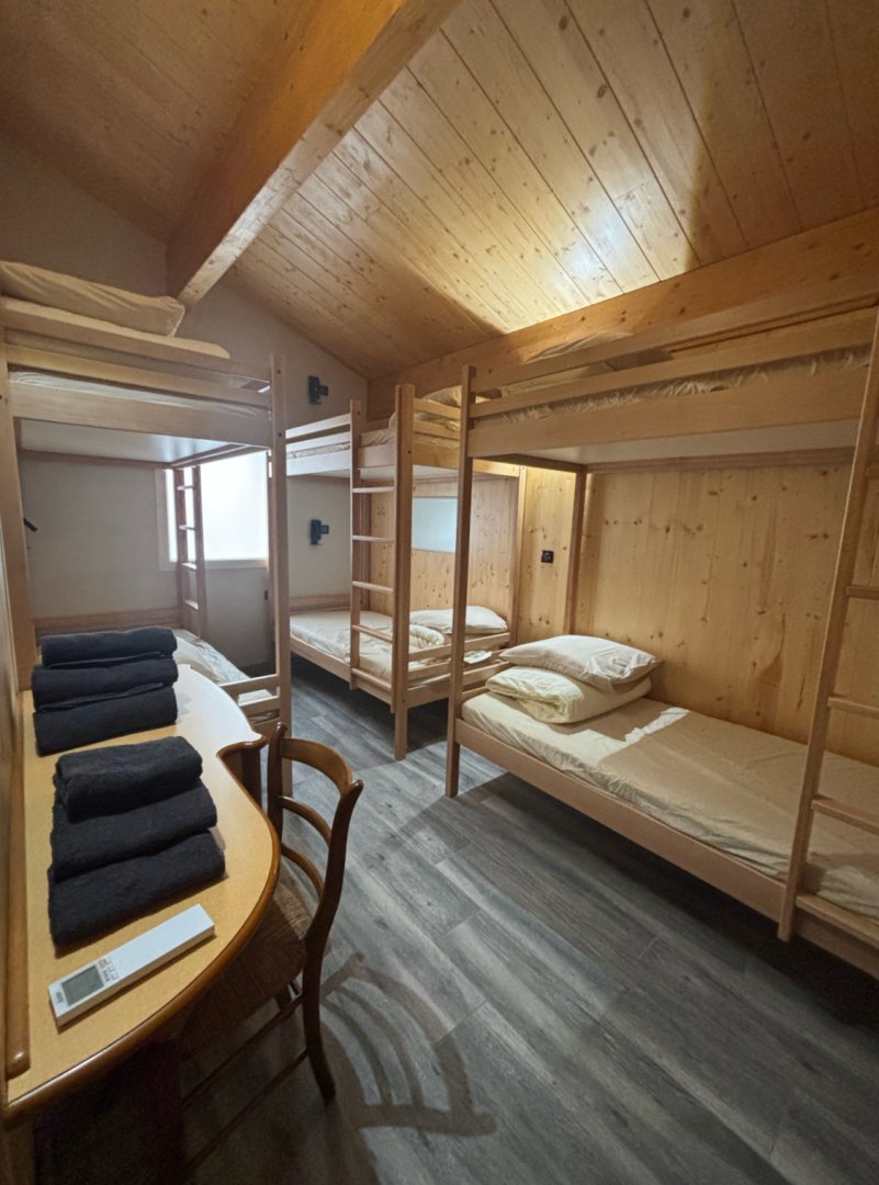 Chambre 1 : dortoir avec trois lits superposés de 90 cm (ouvert si au delà de 8 personnes)